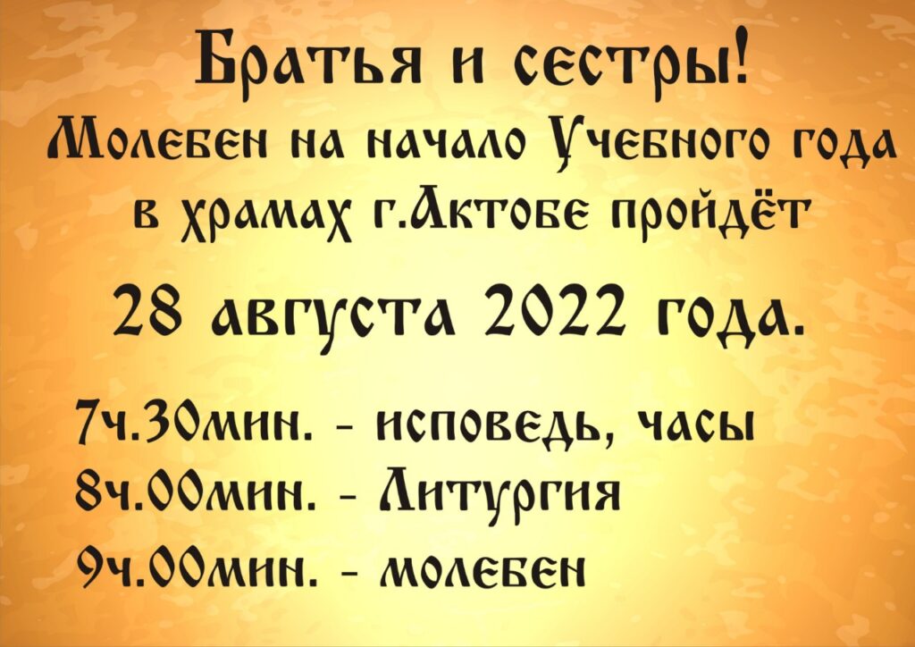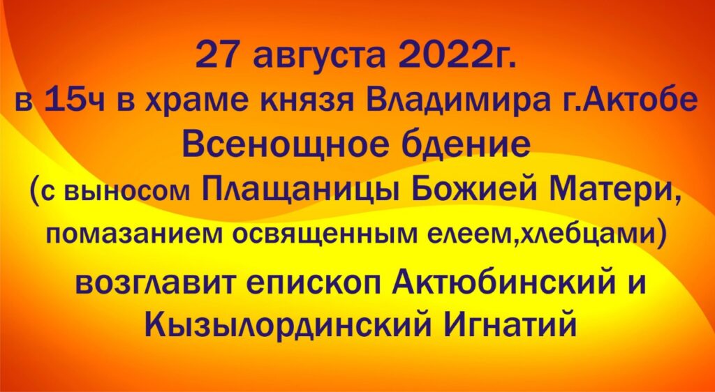 В престольный праздник богослужение возглавит епископ Актюбинский и Кызылординский Игнатий.