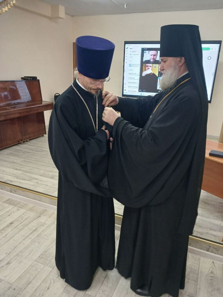 Также Управляющий епархии наградил протоиерея Михаила Степанова орденом преподобномучеников Серафима и Феогноста в честь недавнего пятидесятилетнего юбилея.