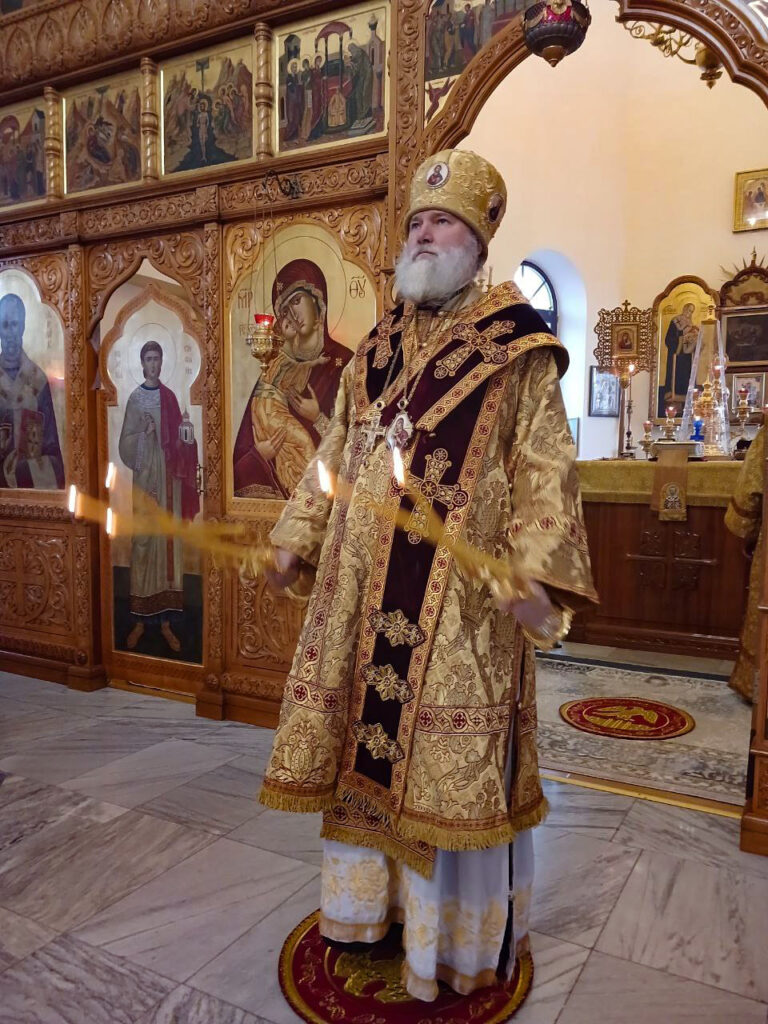 Во второй половине дня, накануне празднования дня памяти великого святого и учителя Церкви святителя Иоанна Златоустаго Управляющий епархии совершил в храме в честь великомученика Георгия Победоносца всенощное бдение.