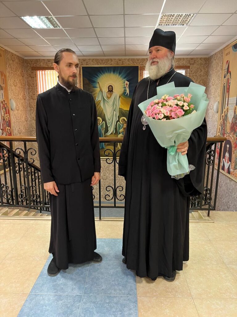 25 августа 2025 года. В здании епархиального управления при Свято-Никольском кафедральном соборе города Актобе епископ Актюбинский и Кызылординский Игнатий поздравил с днем рождения клирика Никольского собора, руководителя отдела по социальной работе иерея Романа Сайтиева.