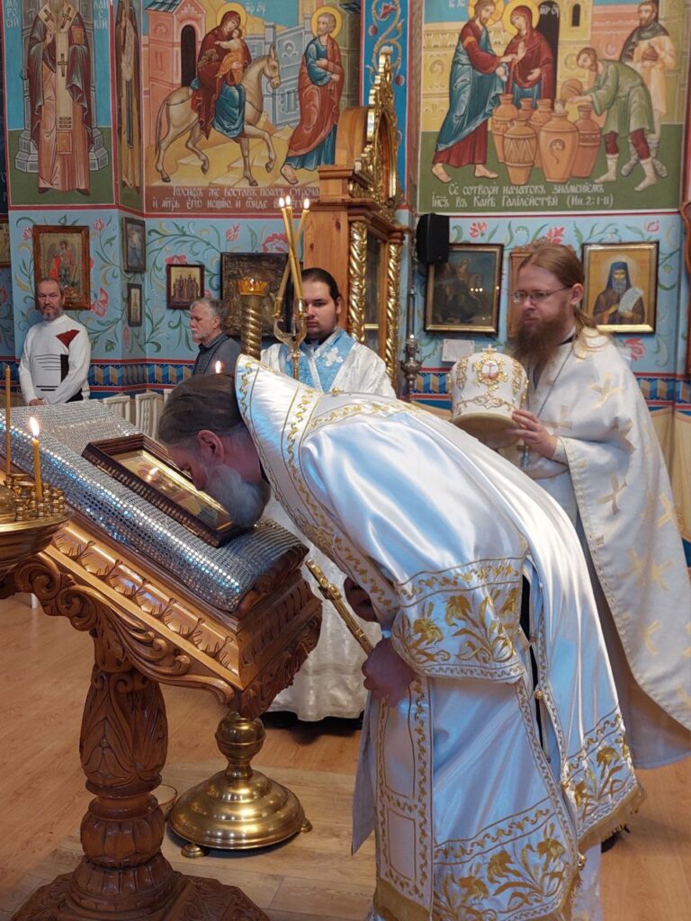 В завершение Литургии состоялось славление празднику Обрезания Господня. Епископ Игнатий совершил молитву святителю Василию.