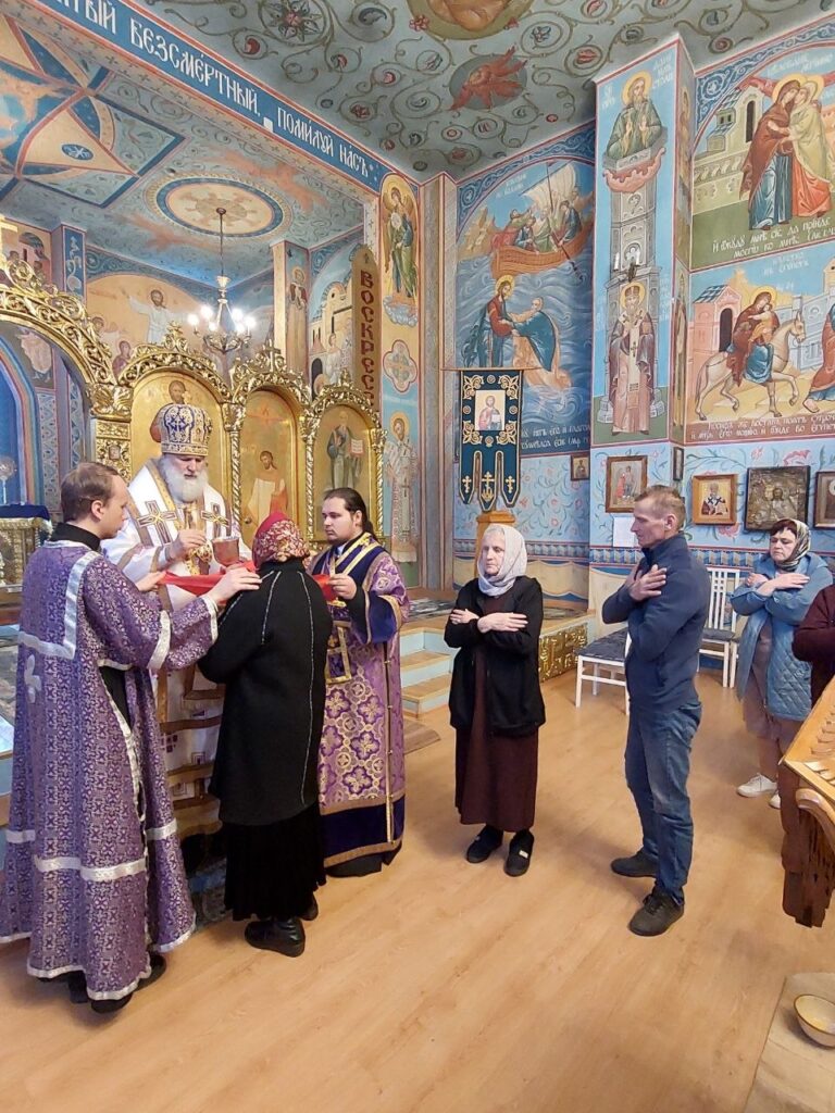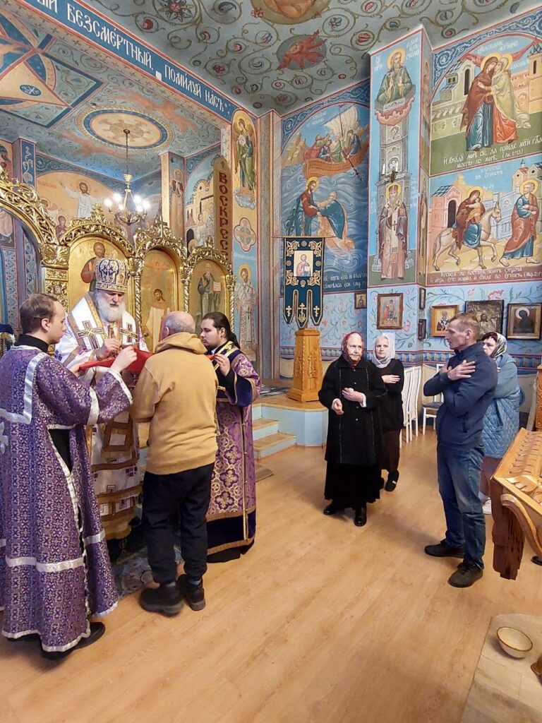 В завершение Литургии владыка Игнатий обратился к верующим с проповедью, в которой поведал о сути духовного и молитвенного подвига преподобной Марии Египетской, поздравил причастников с принятием Божественной благодати, пожелав сил, здравия в оставшиеся дни Великого поста и преподал архипастырское благословение.