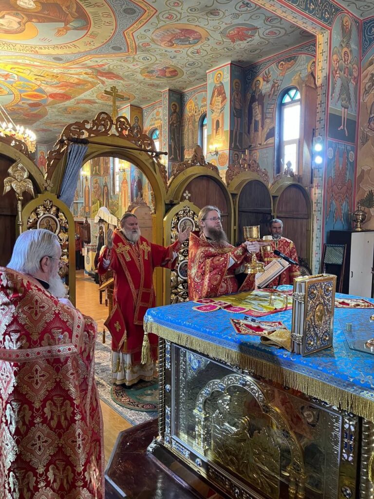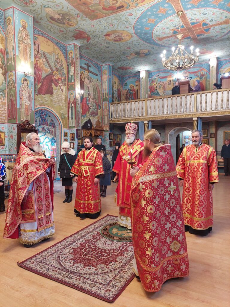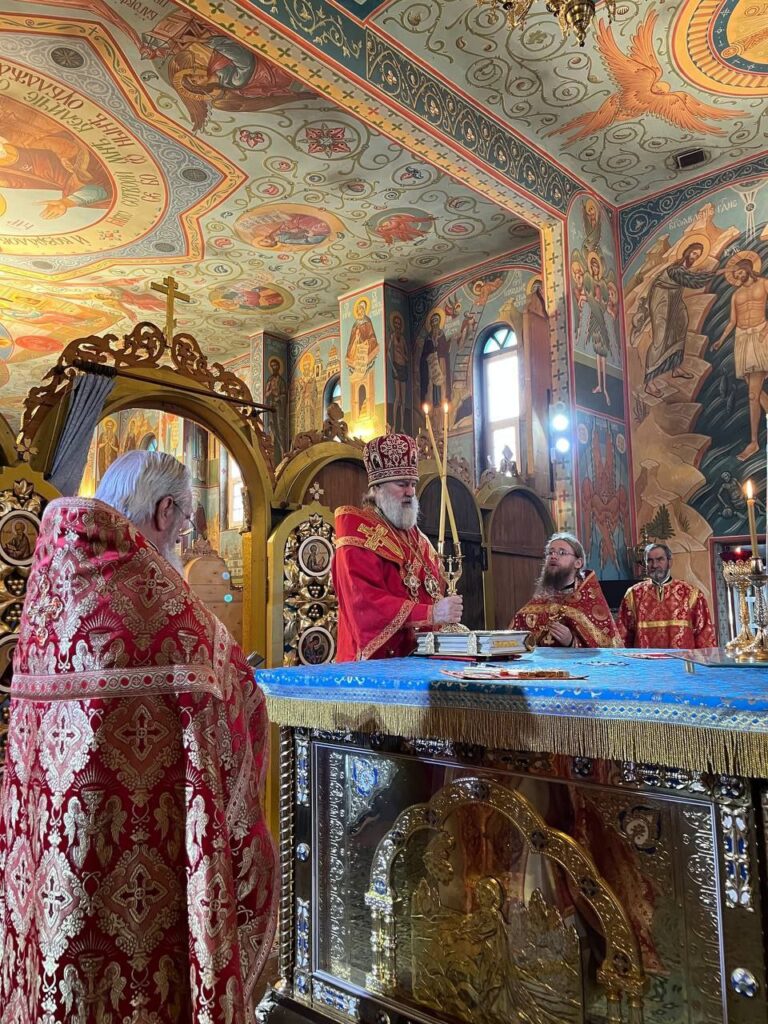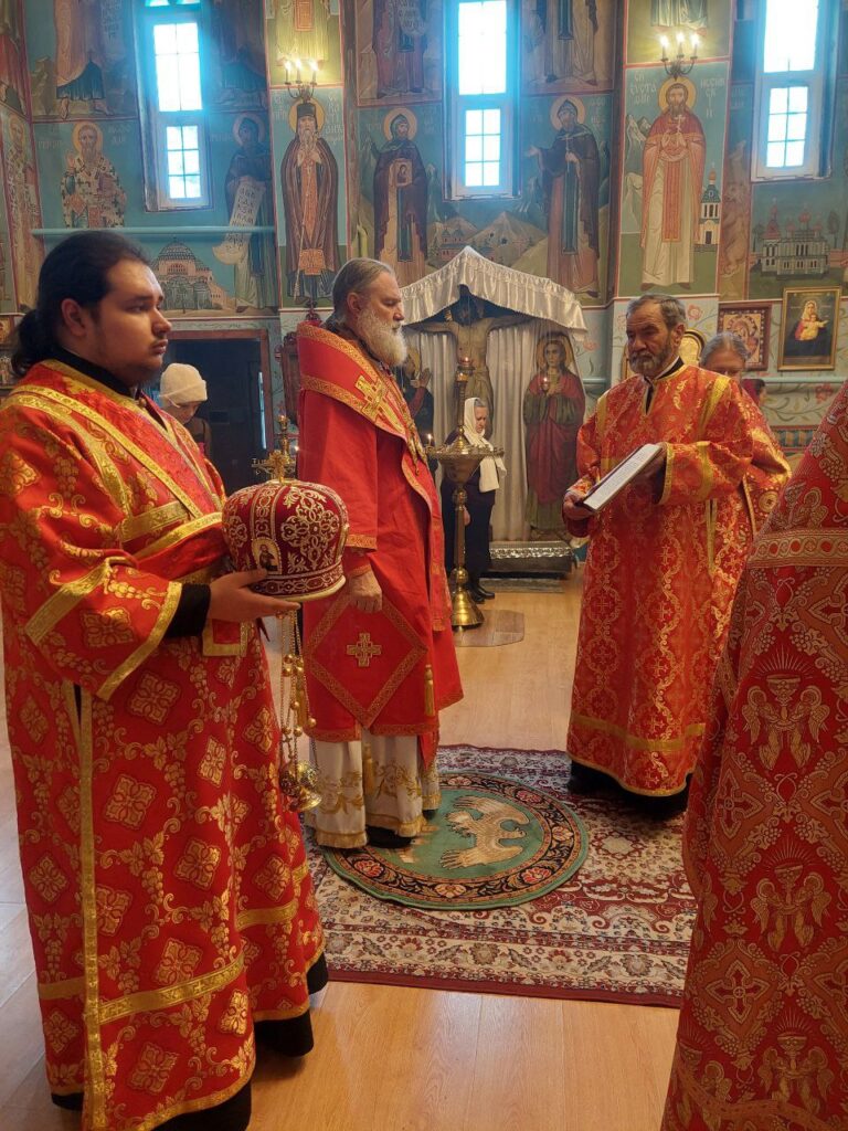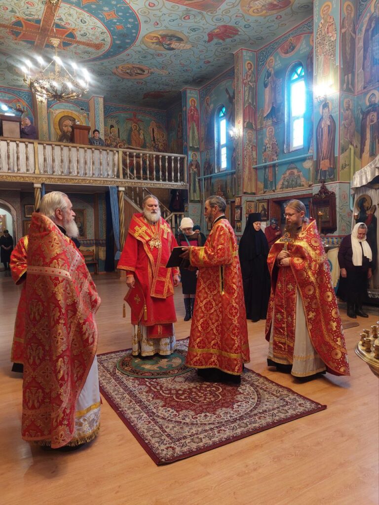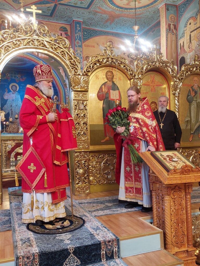 Его Преосвященству сослужили: настоятель Михайло-Архангельского храма села Тургень иеромонах Варсонофий (Ларионов), личный секретарь Его Преосвященства, клирик подворья иеромонах Амвросий (Дудонов).