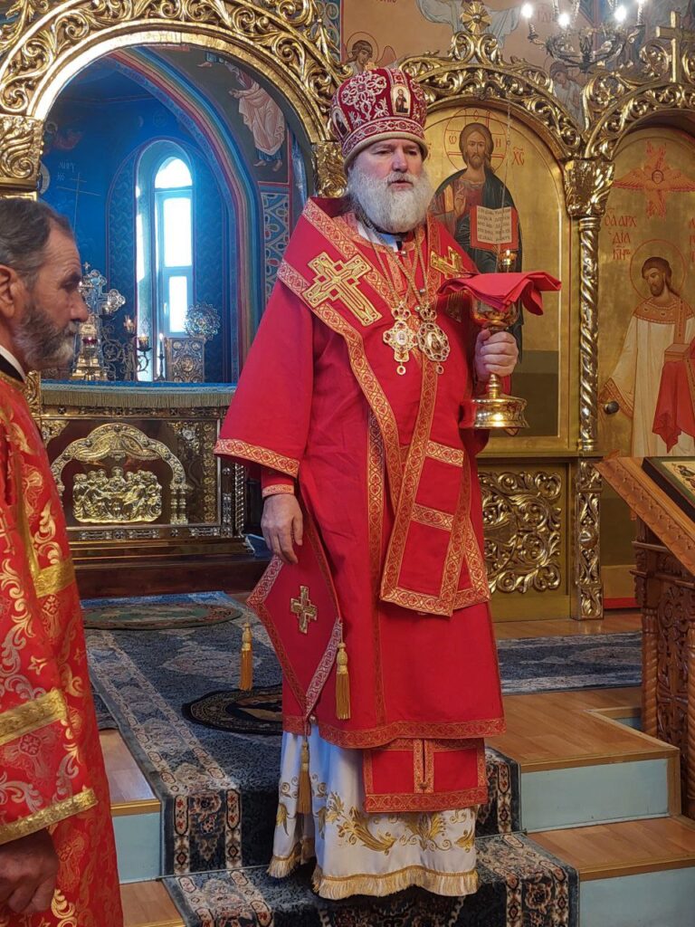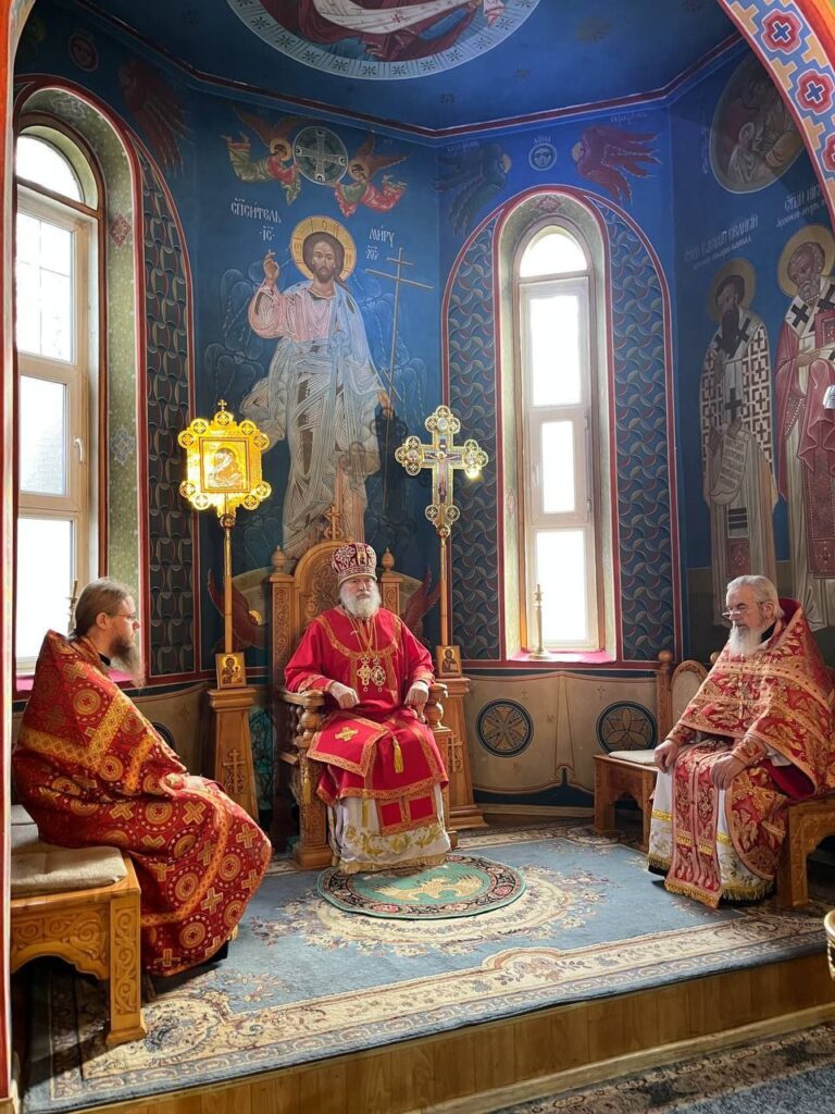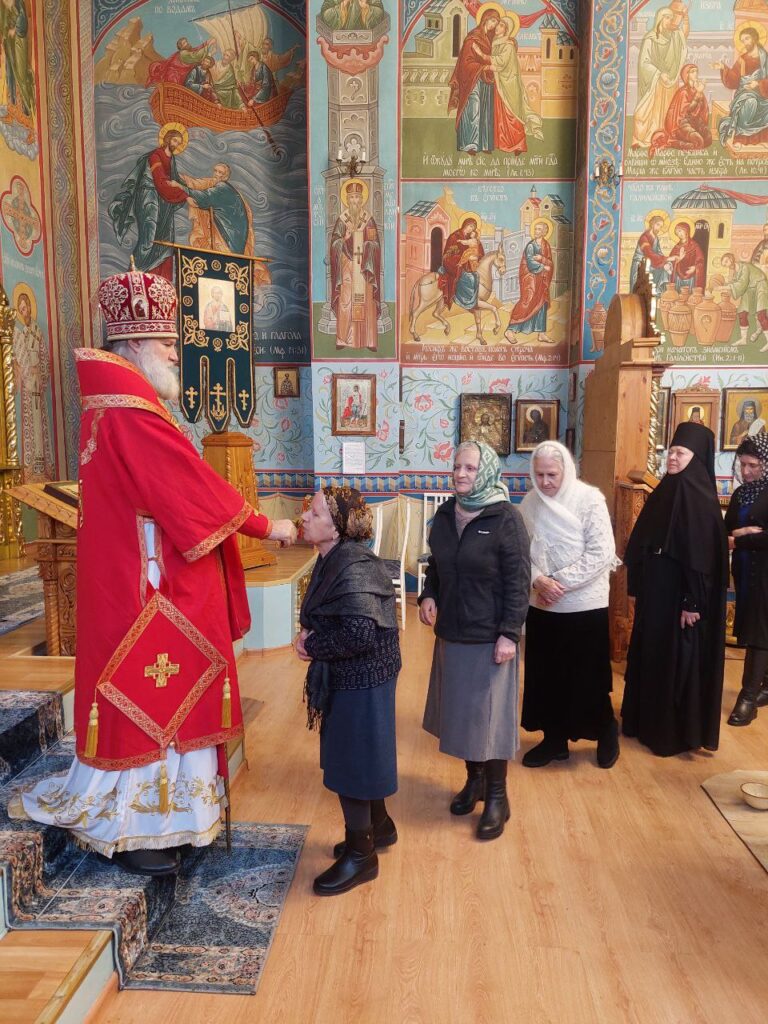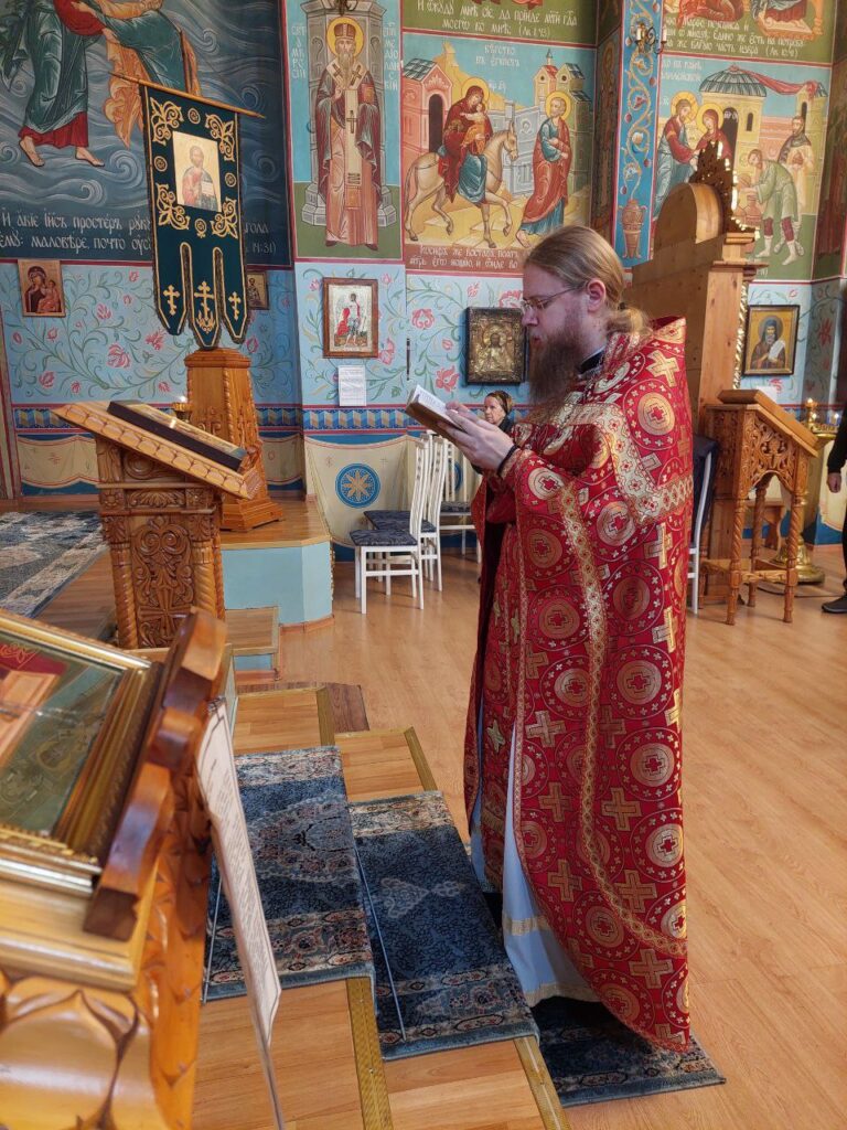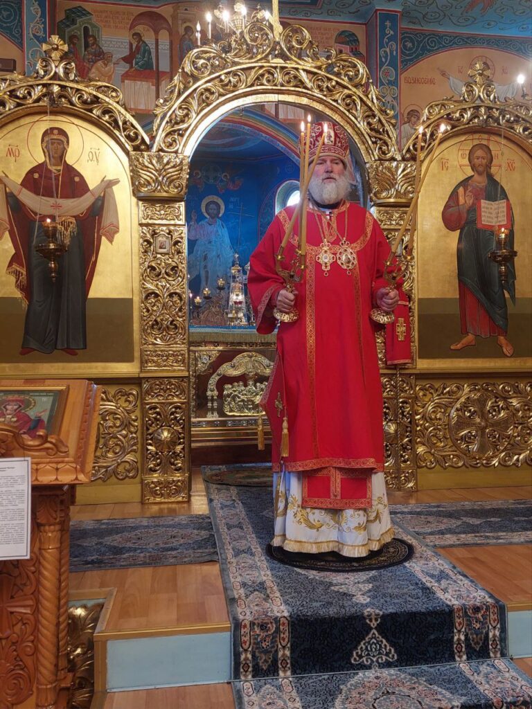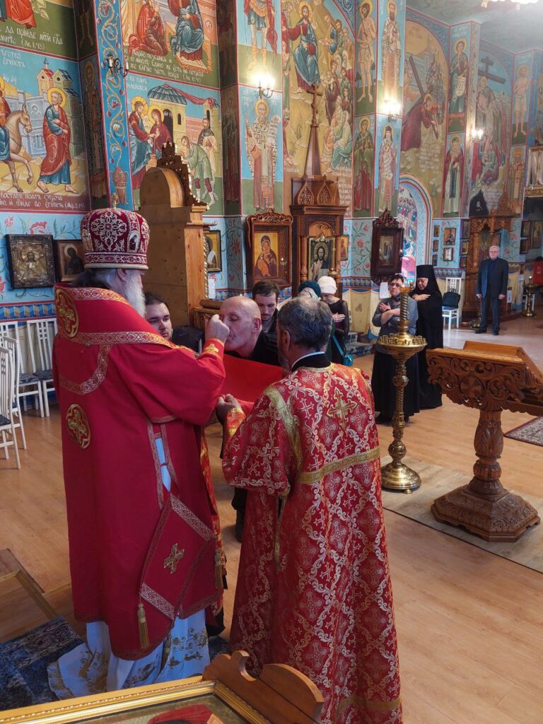 Его Преосвященству сослужили: настоятель Михайло-Архангельского храма села Тургень иеромонах Варсонофий (Ларионов), личный секретарь Его Преосвященства, клирик подворья иеромонах Амвросий (Дудонов).