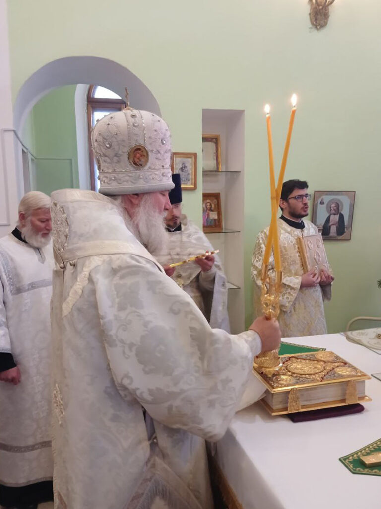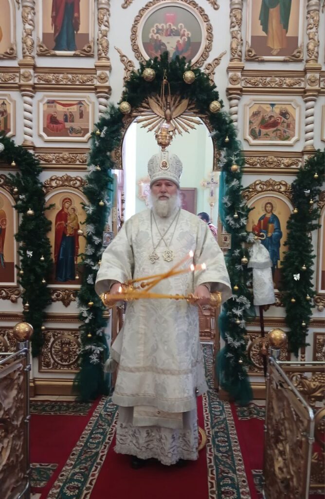 Управляющему епархии сослужили: и.о.благочинный церквей Актюбинского церковного округа, настоятель храма Архангела Михаила города Актобе иеромонах Киприан (Дахно), настоятель Свято-Серафимовского прихода протоиерей Михаил Степанов, диакон Сергий Мешков.