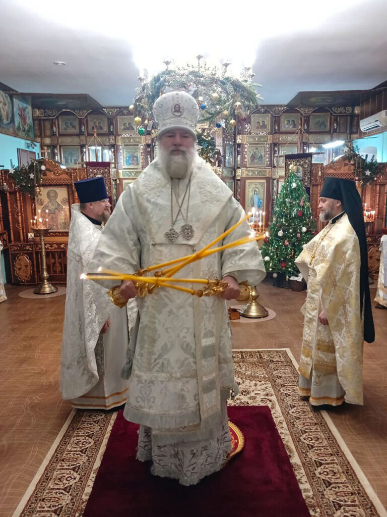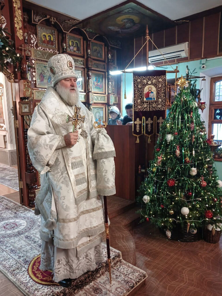 В завершение общей молитвы епископ Игнатий поздравил присутствующих с празднуемым событием рождения Спасителя миру Господа Иисуса Христа и обратился с наставлением.