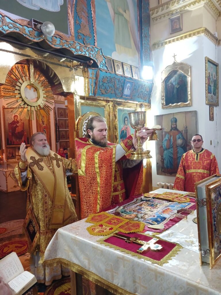 Его Преосвященству сослужили: клирики прихода протоиерей Виталий Ивашинин, иерей Серафим Ивашинин.
