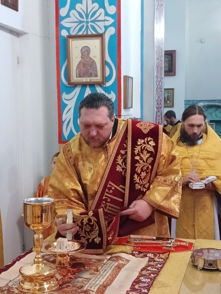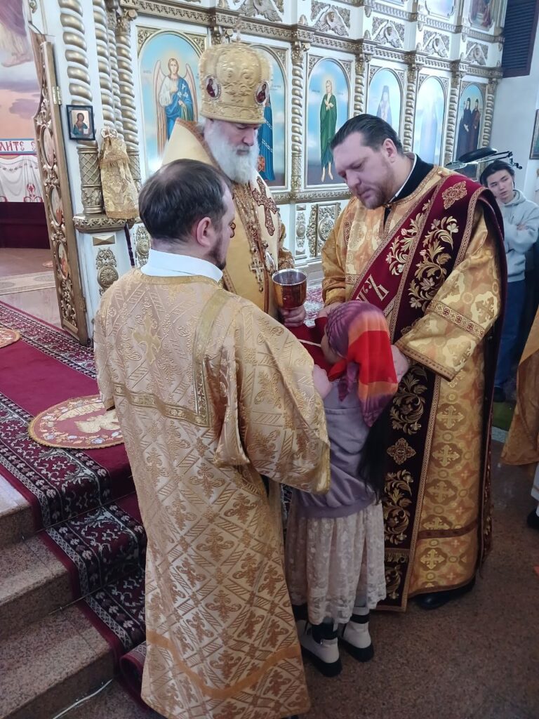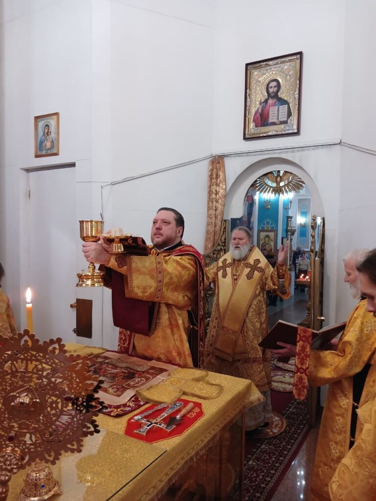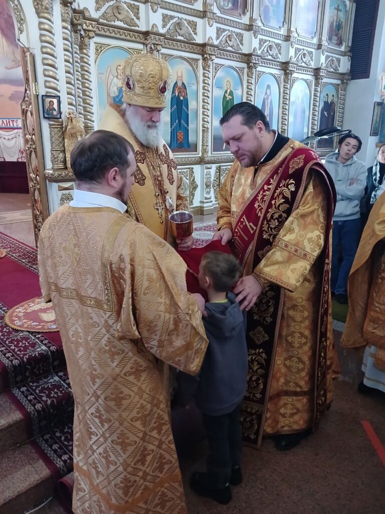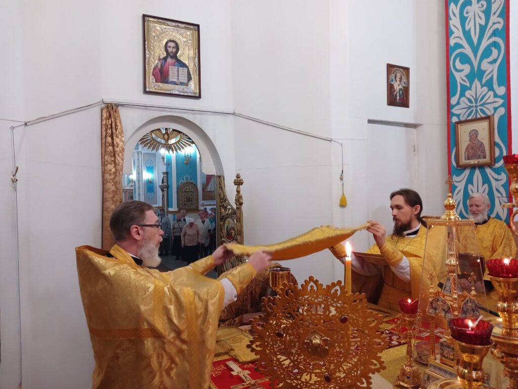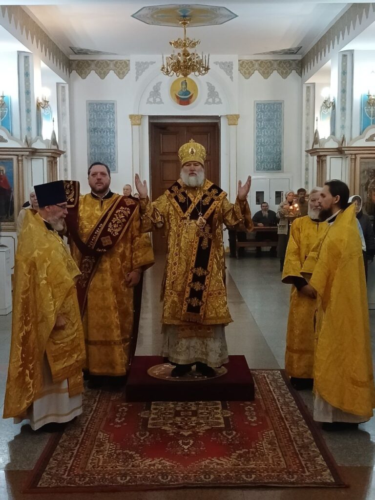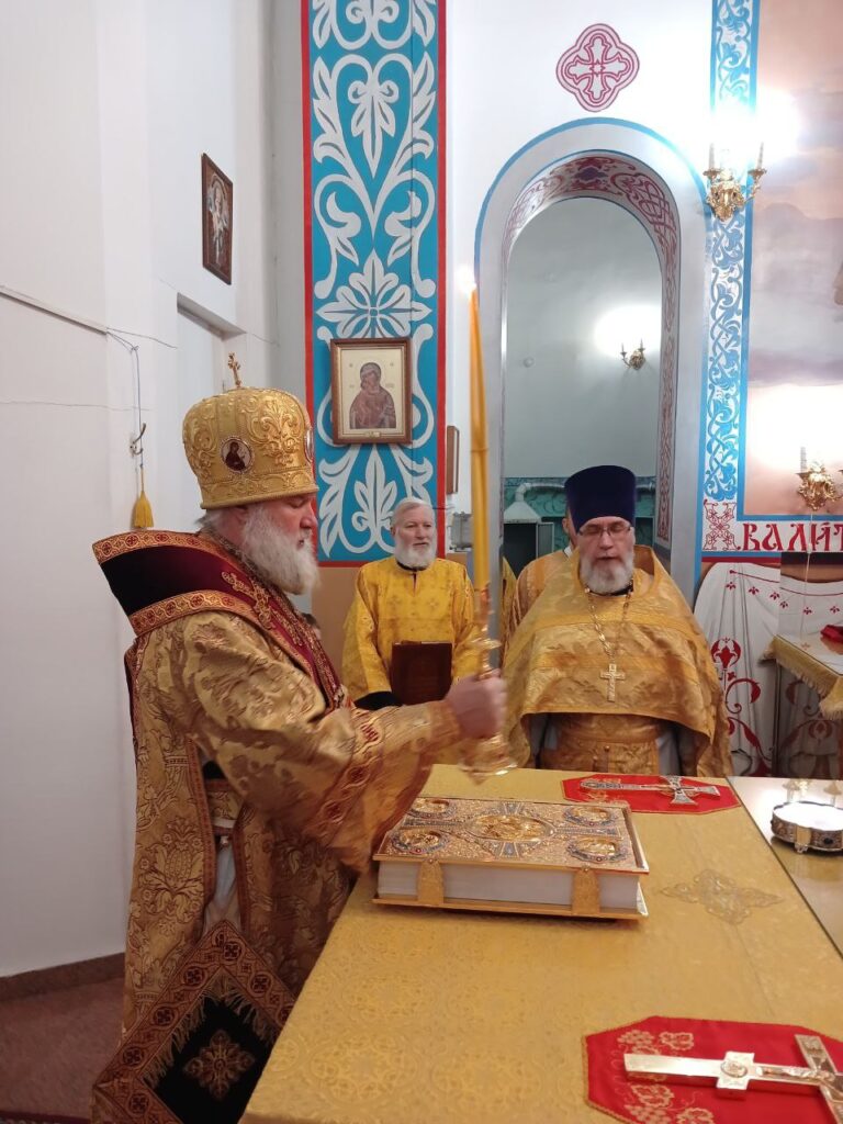 Преосвященному владыке сослужили: ключарь собора иерей Леонид Худяков, иерей Роман Сайтиев, диакон Сергий Мешков.