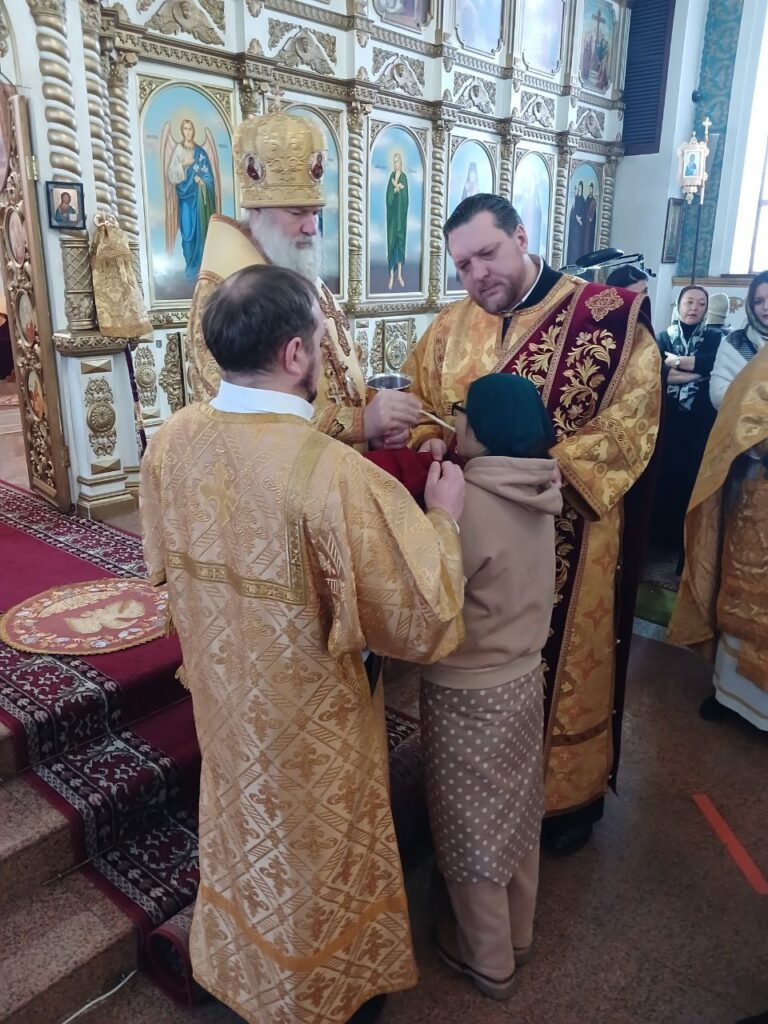 За Литургией молились: прихожане и сотрудники епархиального управления, представители православной молодежи, преподаватели и воспитанники воскресной школы.