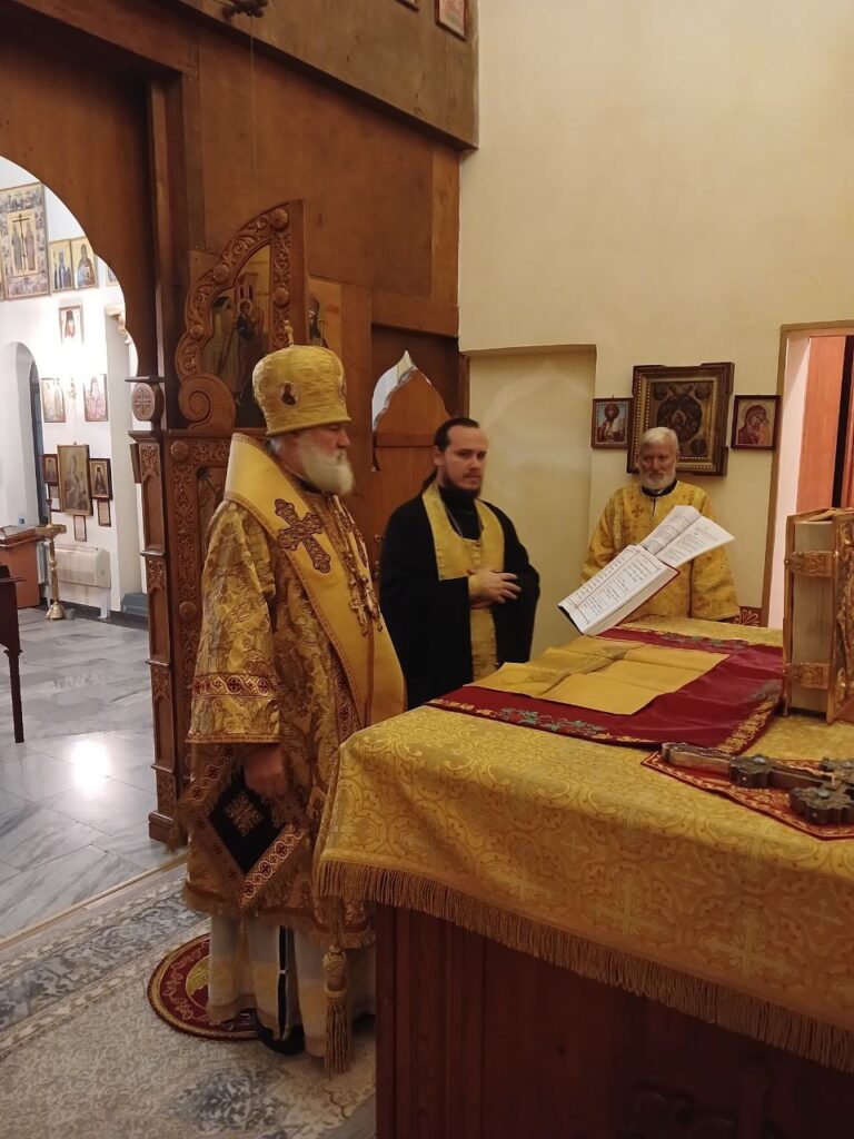 Епископ Актюбинский и Кызылординский Игнатий совершил раннию Литургию в храме в честь Георгия Победоносца в городе Байконур в сослужении и.о настоятеля прихода иерея Даниила Ивашинина.