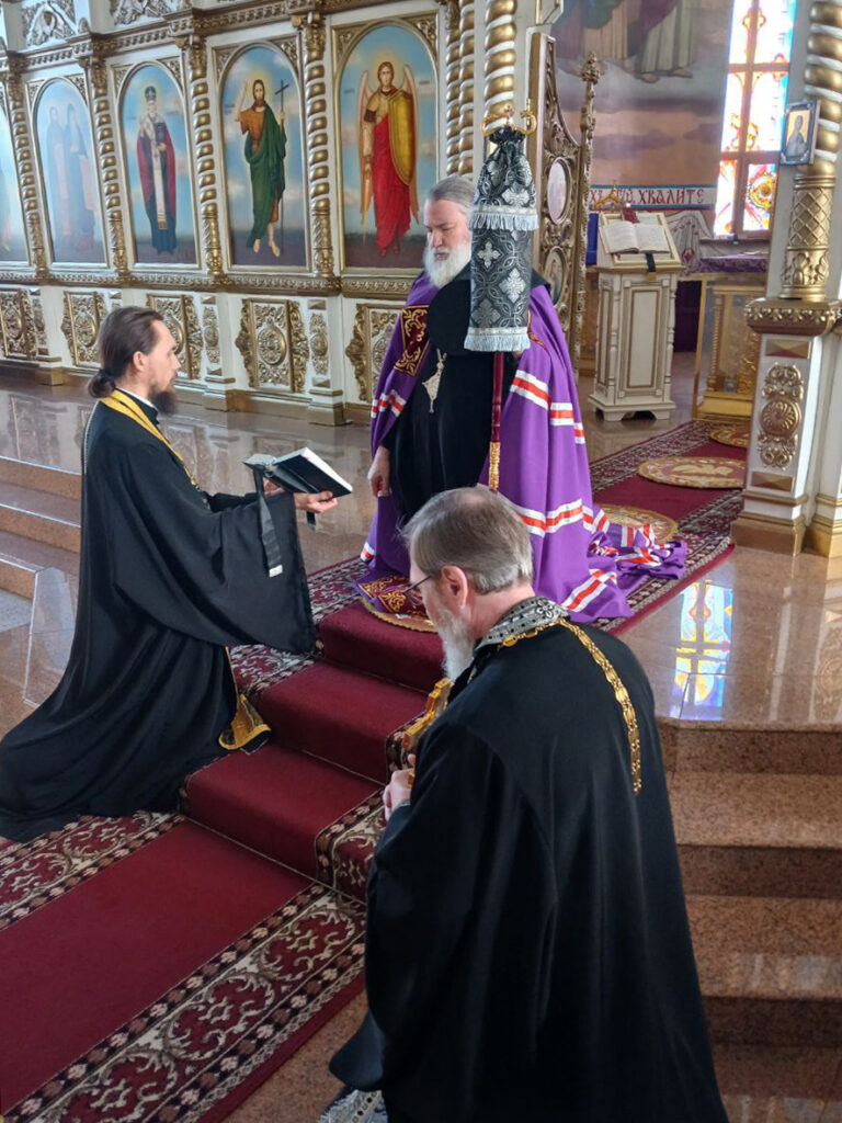 В завершение вечерни епископ Игнатий коленопреклоненно прочитал собравшимся молитвы на начало Святой Четыредесятницы, совершив земной поклон, первым испросил прощения у духовенства и верующих и обратился со словом назидания.