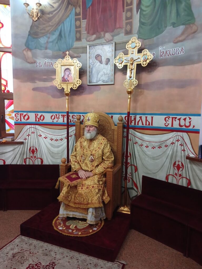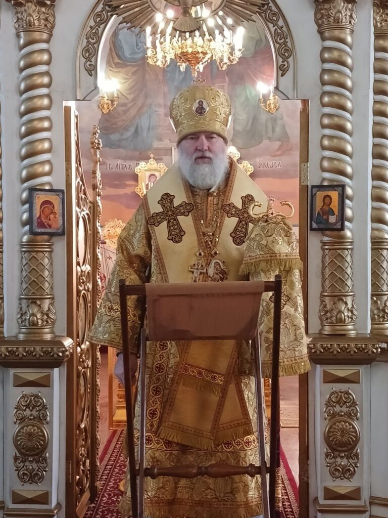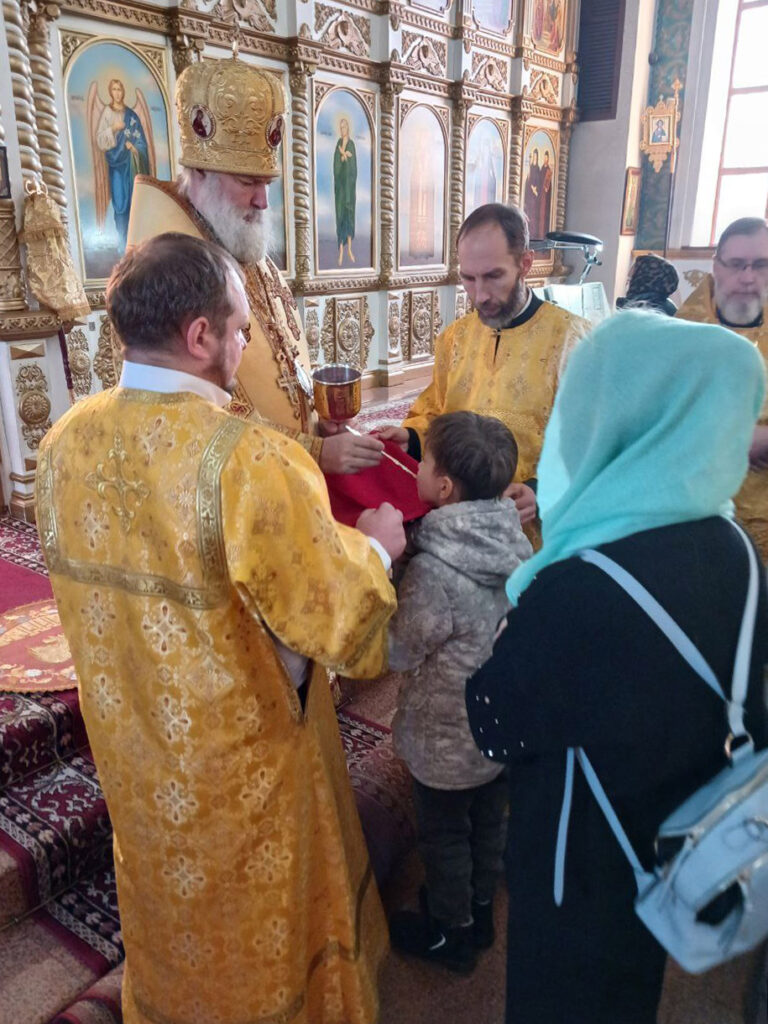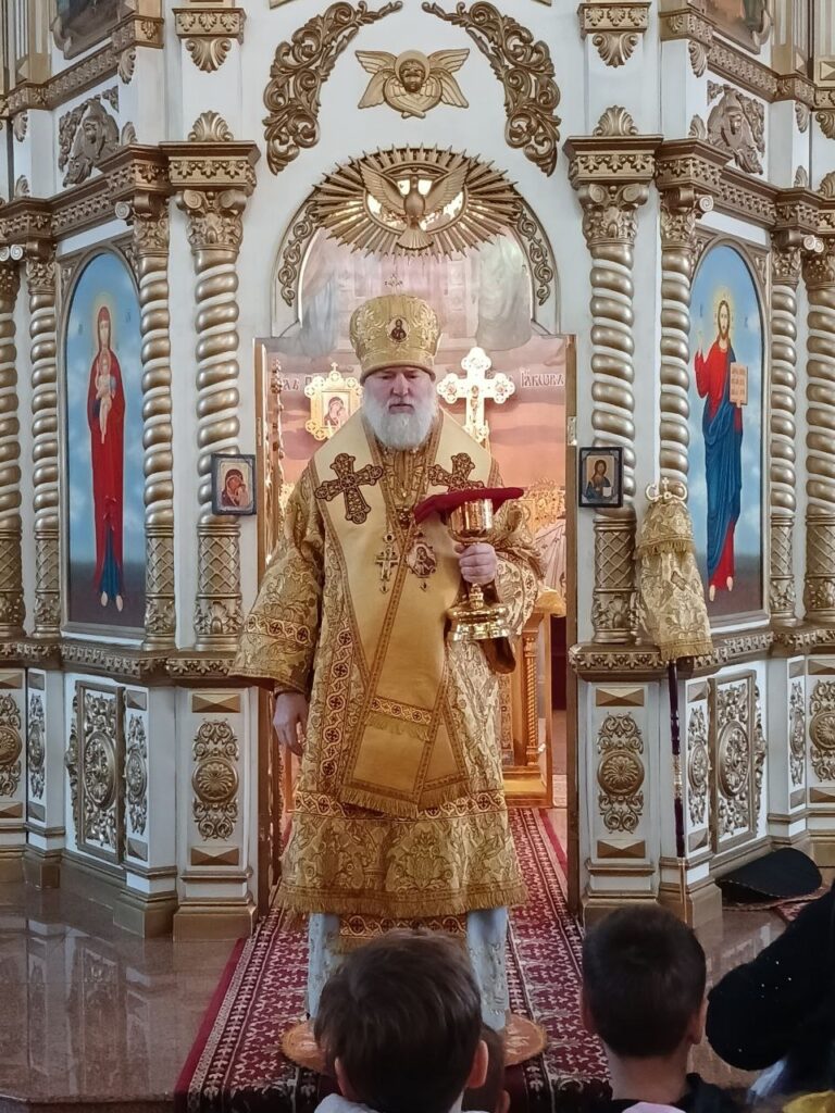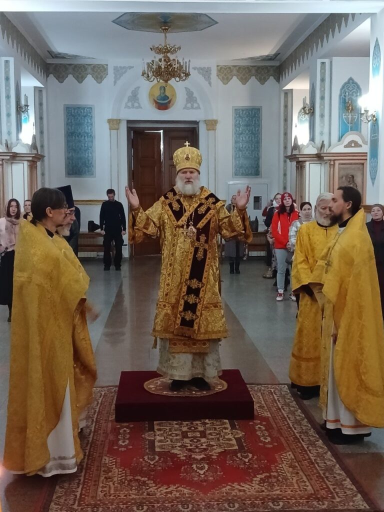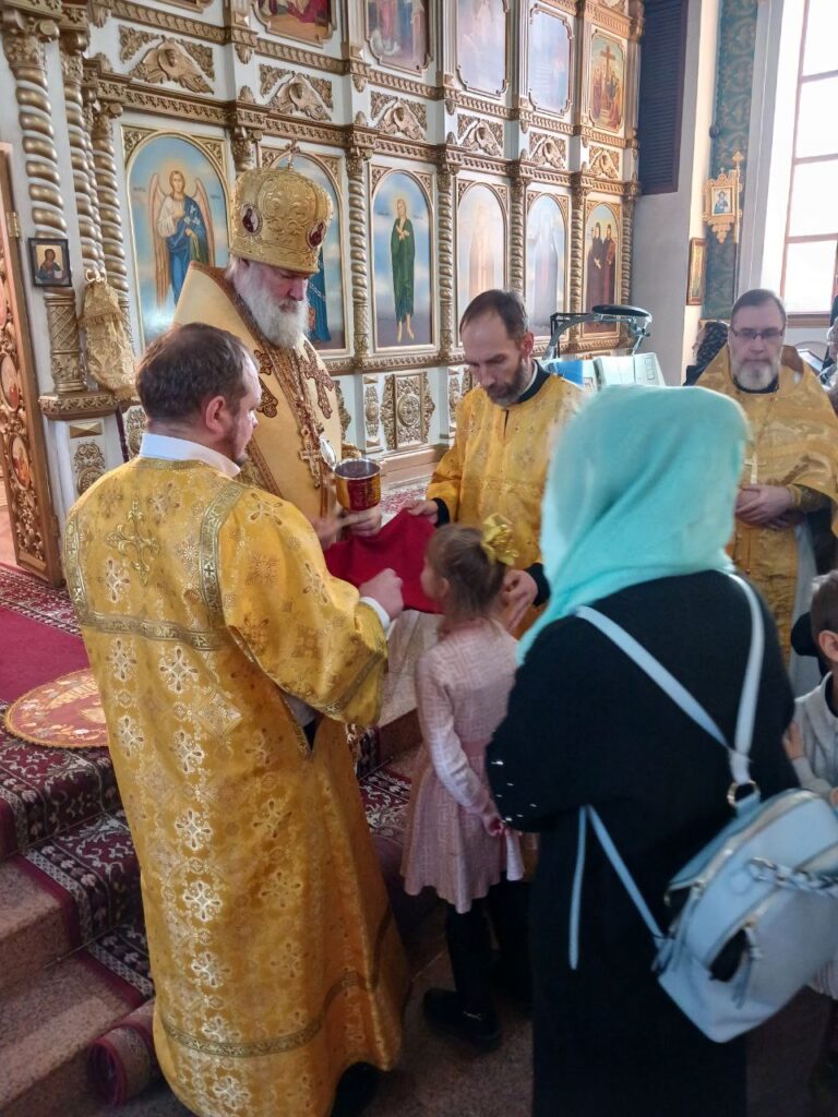 По окончании Литургии архипастырь поздравил всех присутствующих с праздником воскресного дня и произнес слово поучения на тему поста.