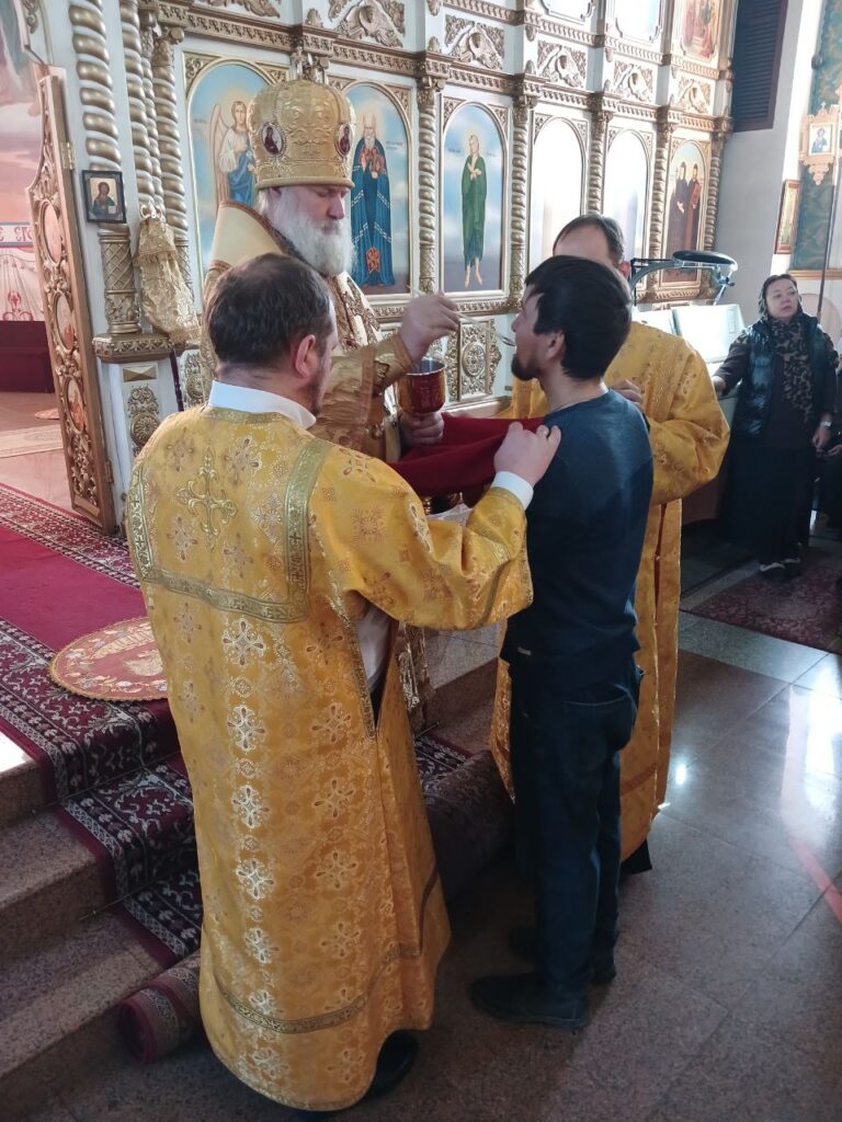 В первое воскресенье Рождественского поста епископ Актюбинский и Кызылординский Игнатий совершил Божественную литургию в Свято-Никольском кафедральном соборе городе Актобе.