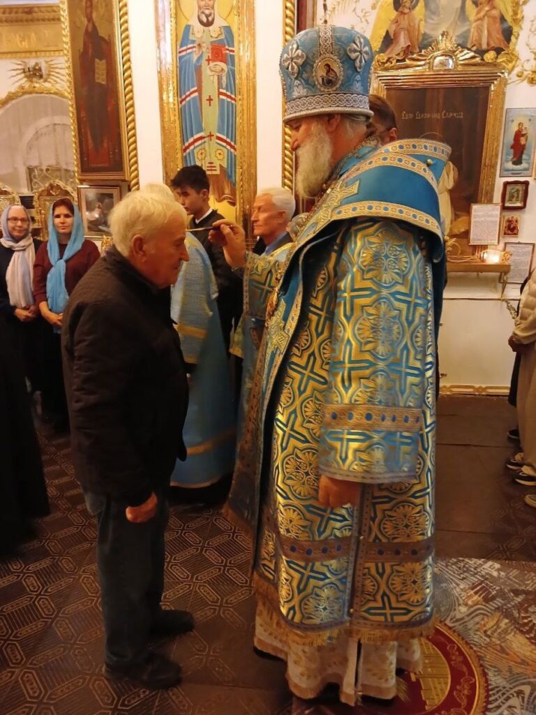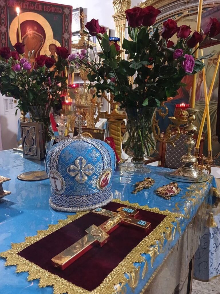 3 ноября 2025 года. Епископ Актюбинский и Кызылординский Игнатий возглавил праздничное всенощное бдение с пением акафиста накануне престольного праздника Казанского храма в Кызылорде.