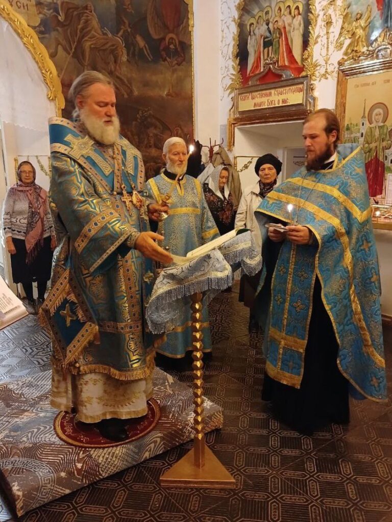 Преосвященному владыке сослужили: настоятель прихода протоиерей Виталий Ивашинин, клирик иерей Серафим Ивашинин.