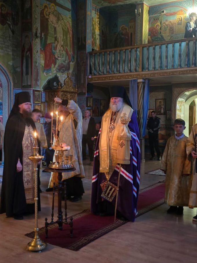 27 декабря 2025 года. Епископ Актюбинский и Кызылординский Игнатий совершил всенощное бдение в Покровском храме города Есик.