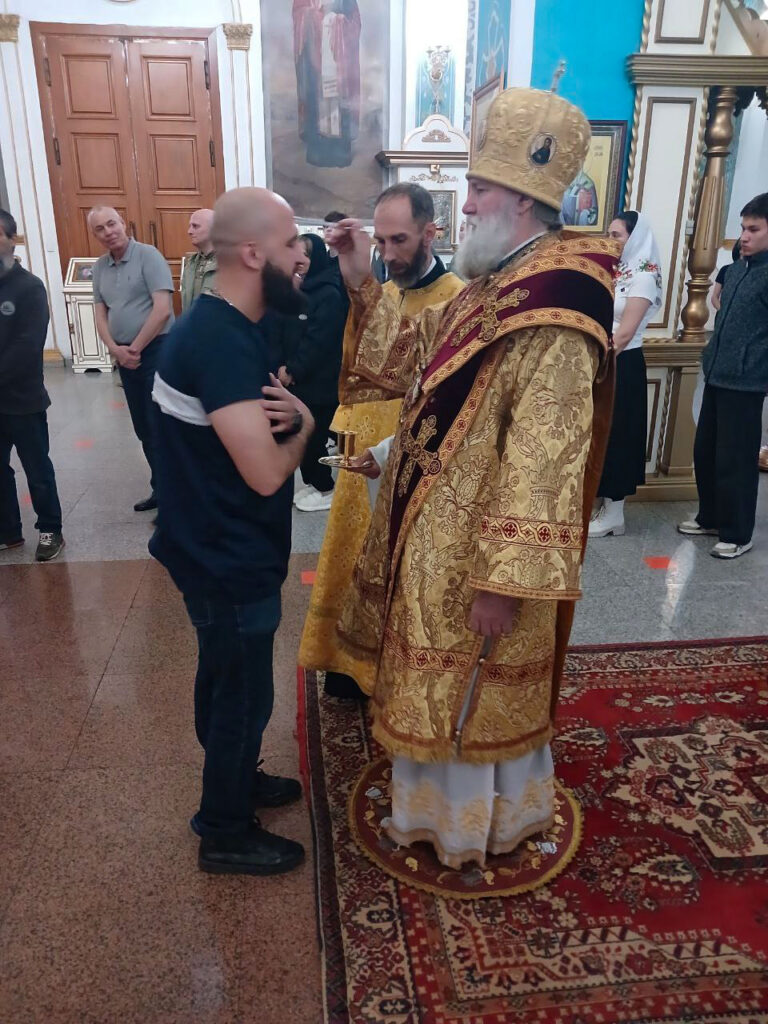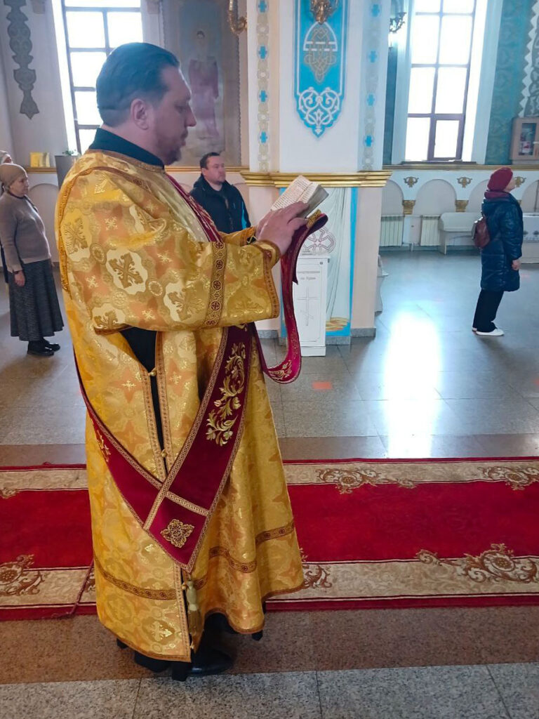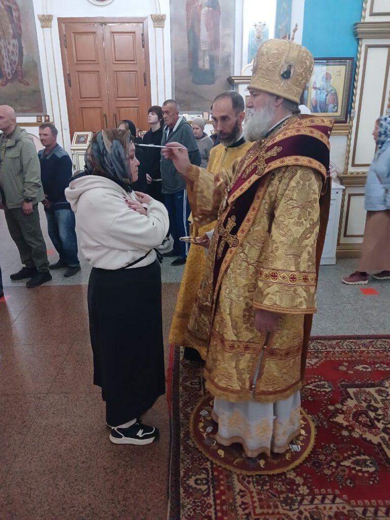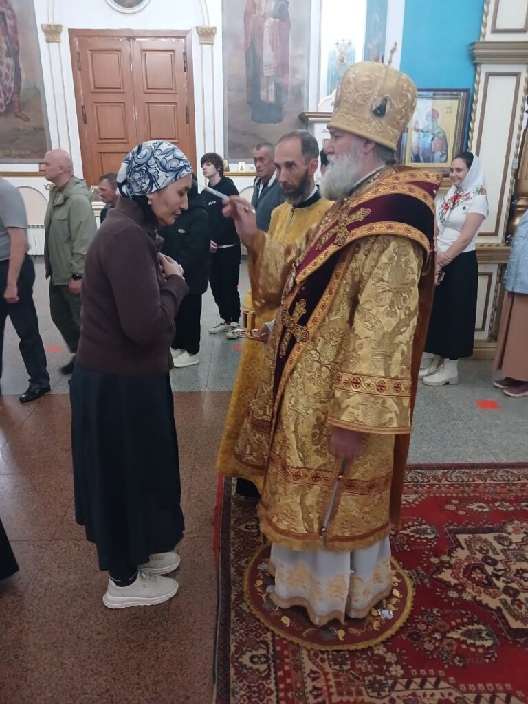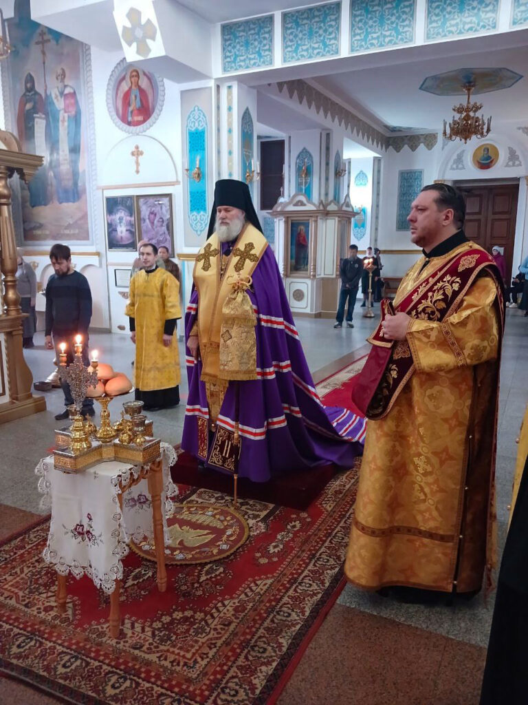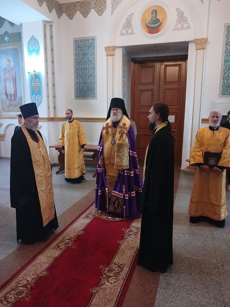 Преосвященному владыке сослужили: ключарь собора иерей Леонид Худяков, диакон Сергий Мешков.