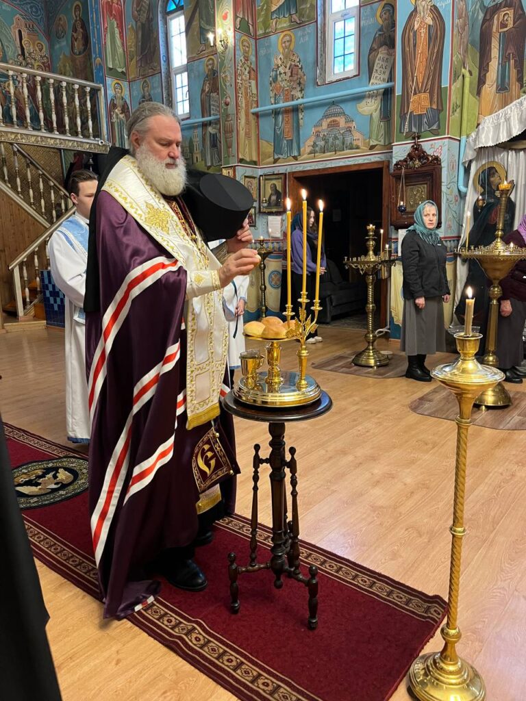 По церковному уставу была совершена лития с освящением хлеба, вина, елея и пшеницы.