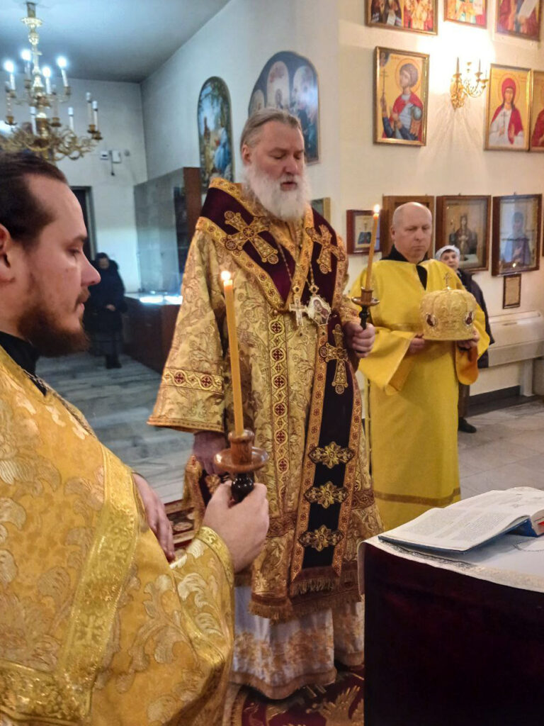 Его Преосвященству сослужили и.о. настоятеля храма иерей Даниил Ивашинин, диакон Михаил Харченко.
