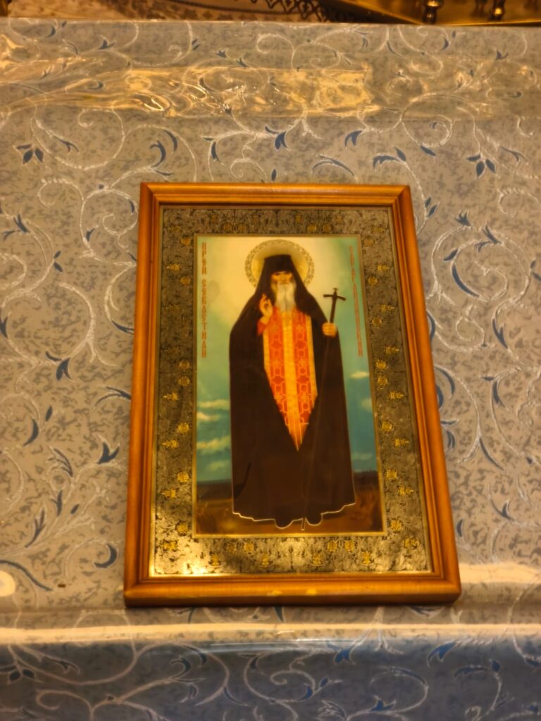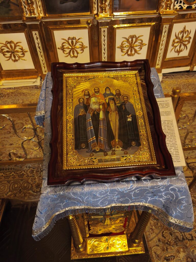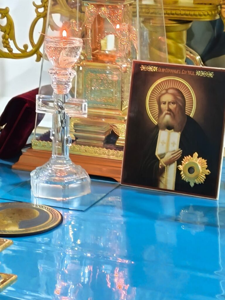 Мощи преподобного Серафима Саровского, на престоле в алтаре.