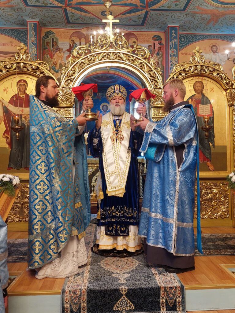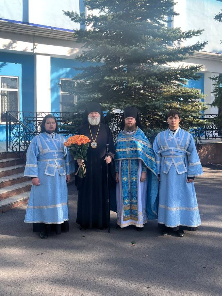 Его Преосвященству сослужили: настоятель прихода в честь святого благоверного князя Александра Невского города Мангейм (Германия) протоиерей Сергий Маношкин, благочинный Талгарского церковного округа, настоятель прихода в честь иконы Божией Матери «Утоли моя печали» иерей Кирилл Фрейганг, настоятель Спасо-Силуановой мужской пустыни игумен Назарий (Марков), настоятель Богоявленского храма села Маловодное протоиерей Николай Ткаченко, настоятель Михайло-Архангельской церкви села Тургень иеромонах Варсонофий (Ларионов), настоятель церкви в честь святой мученицы Параскевы Пятницы города Талгар протоиерей Владимир Барташевич, настоятель прихода в честь великомученика Димитрия Солунского села Чилик протоиерей Игорь Дорохов, настоятель храма во имя Александра Невского села Александровка иерей Роман Клюев, настоятель храма во имя пророка Божия Илии города Жаркент иерей Дмитрий Каплин, клирик Свято-Владимирского храма поселка Баганашил иеромонах Сергий (Внуковский), клирик Покровского храма города Иссык иеромонах Амвросий (Дудонов), диакон Вячеслав Соломатин.