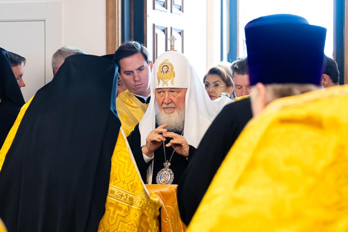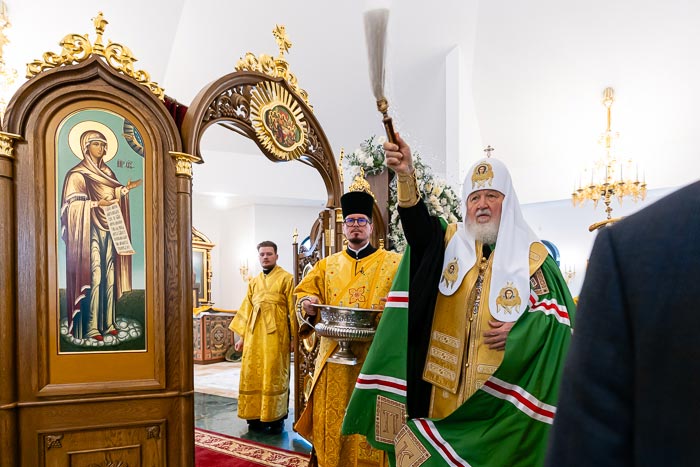 18 сентября 2025 года Святейший Патриарх Московский и всея Руси Кирилл совершил чин малого освящения храма преподобного Сергия Радонежского в столице Республики Казахстан г. Астане.