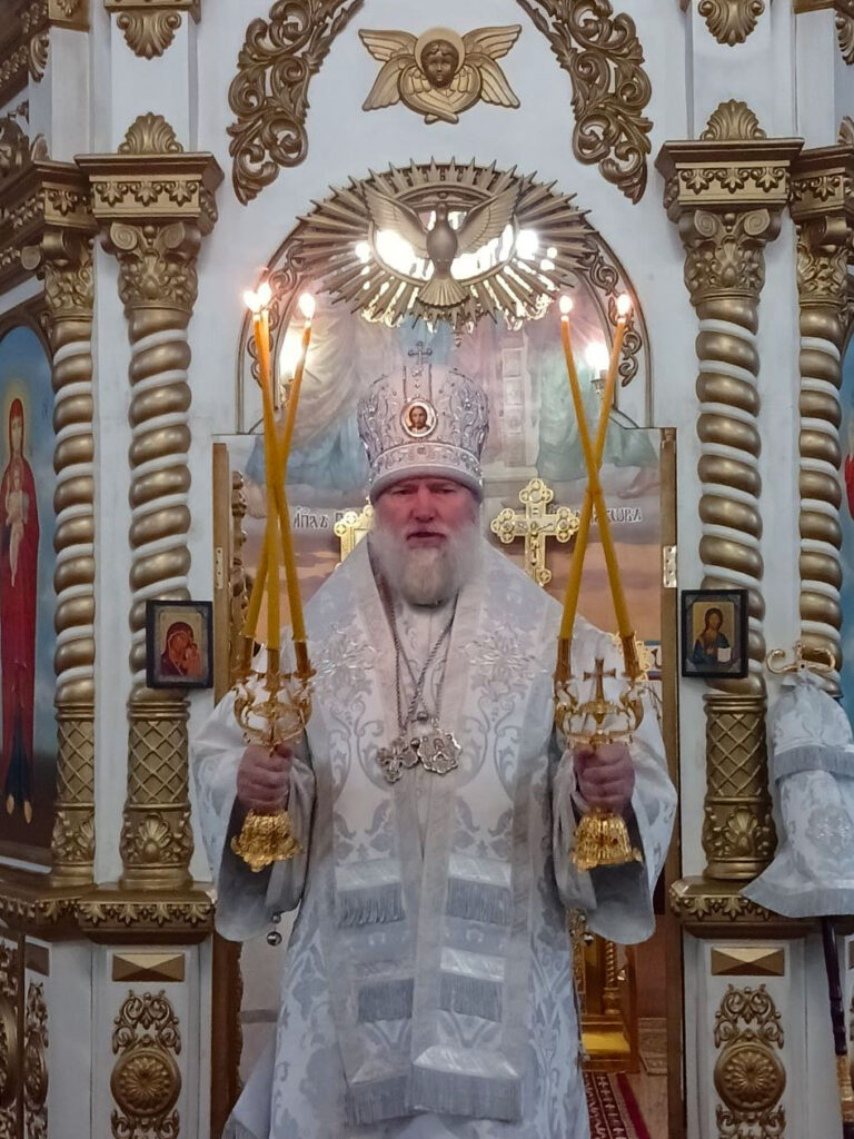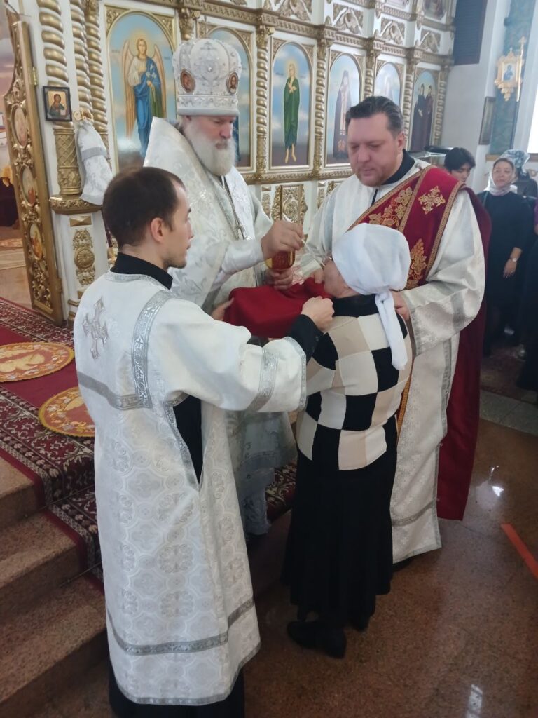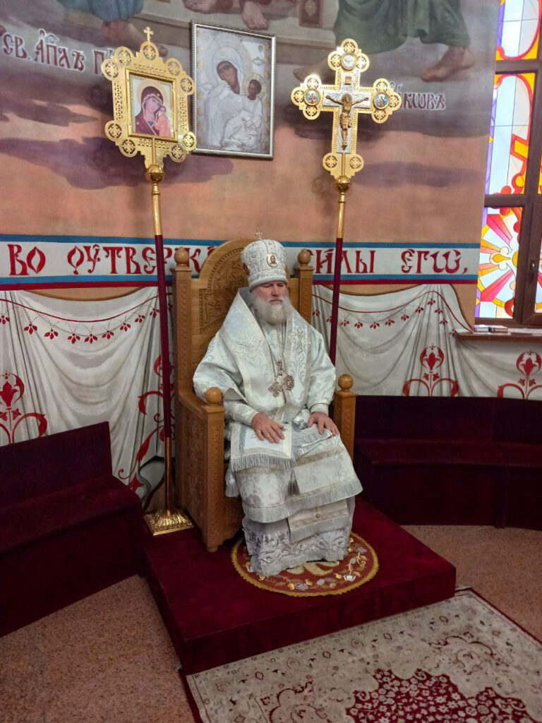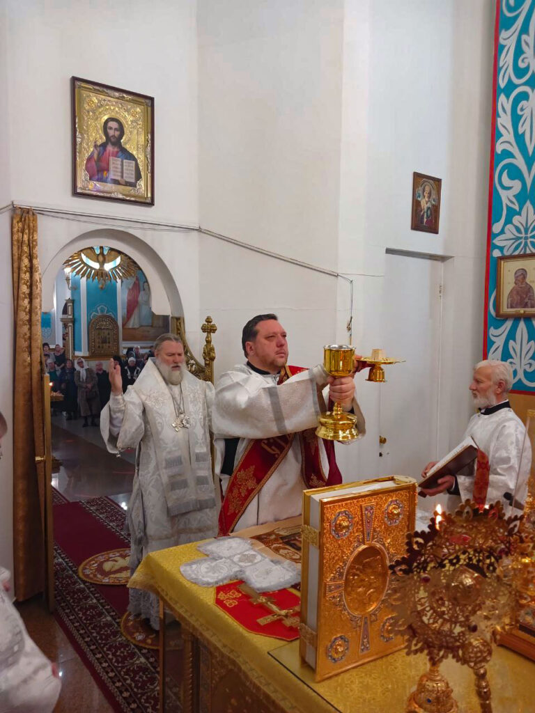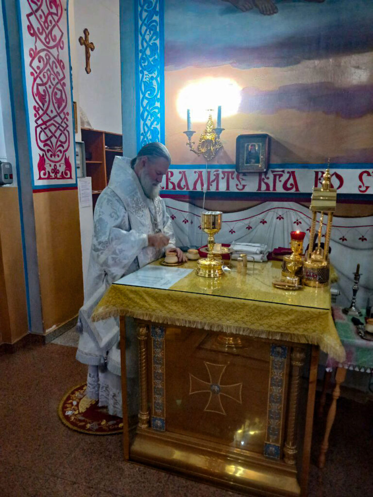 Его Преосвященству сослужили: ключарь собора иерей Леонид Худяков, диакон Сергий Мешков.