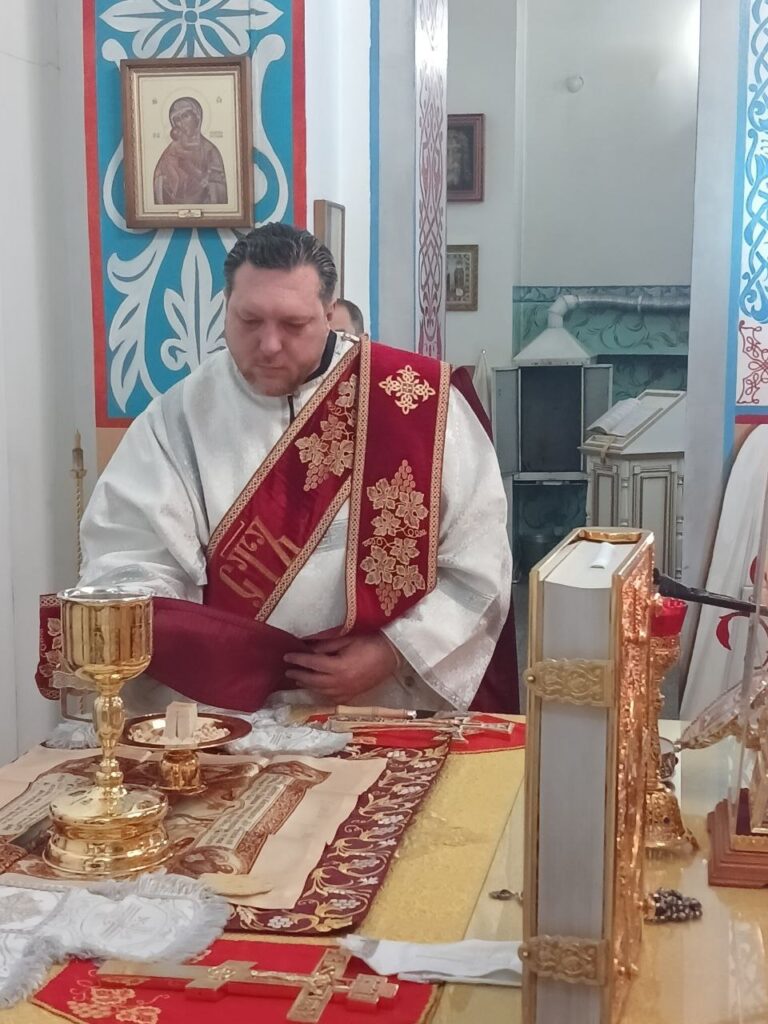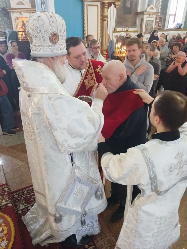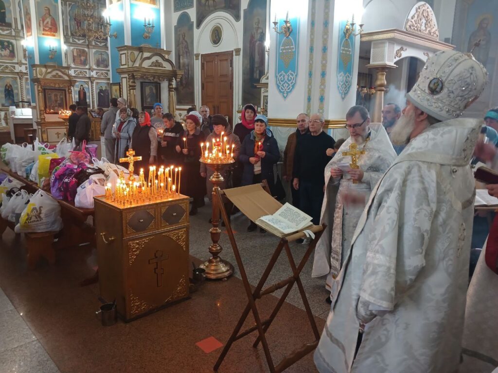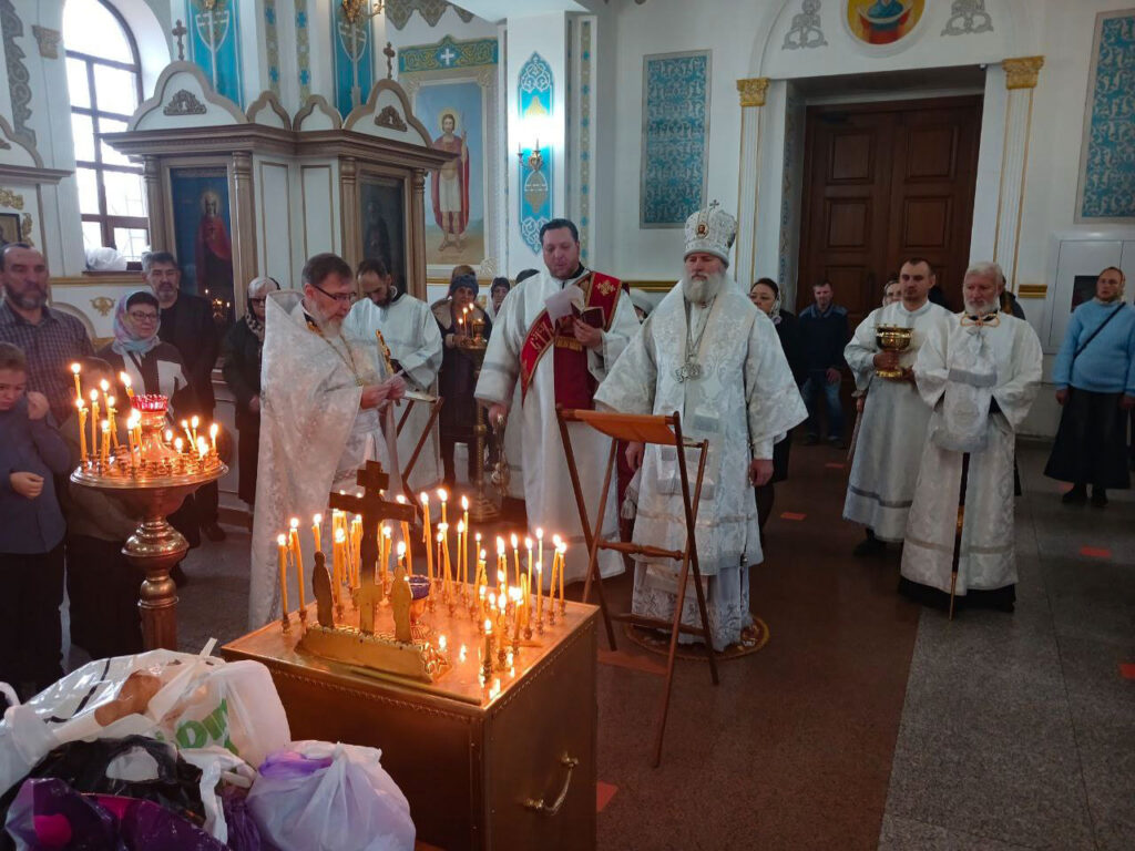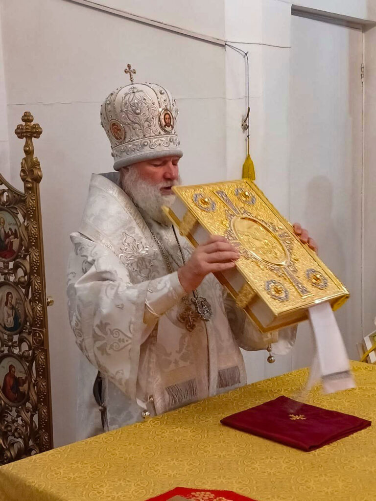 Его Преосвященству сослужили: ключарь собора иерей Леонид Худяков, диакон Сергий Мешков.