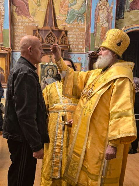 По прочтении Евангельского зачала Его Преосвященство помазал молящихся освященным маслом.