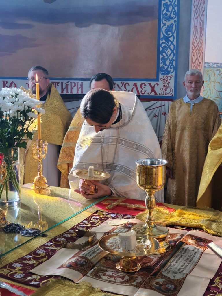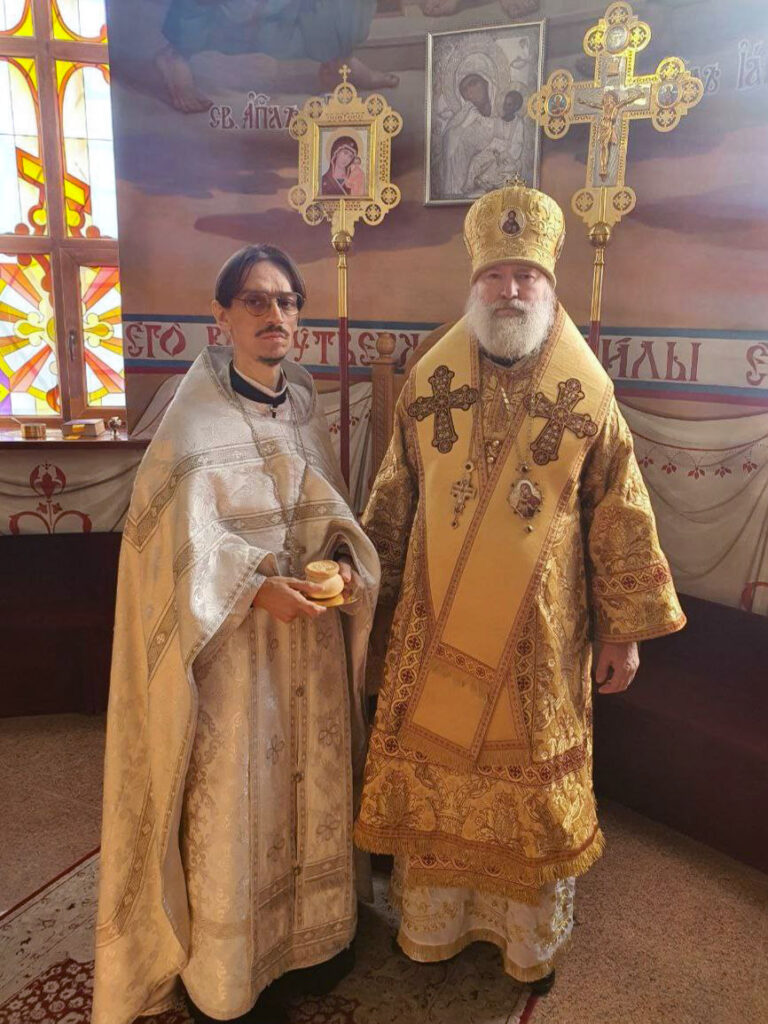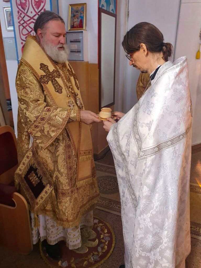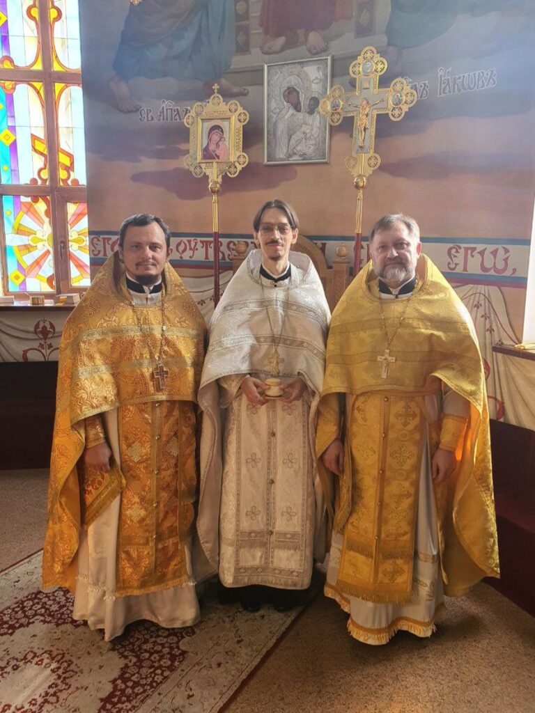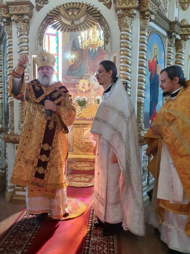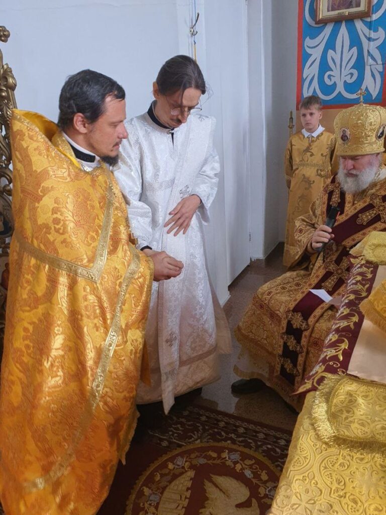 В ходе Литургии после великого входа была совершена иерейская хиротония секретаря епархии диакона Бориса Фатеева.