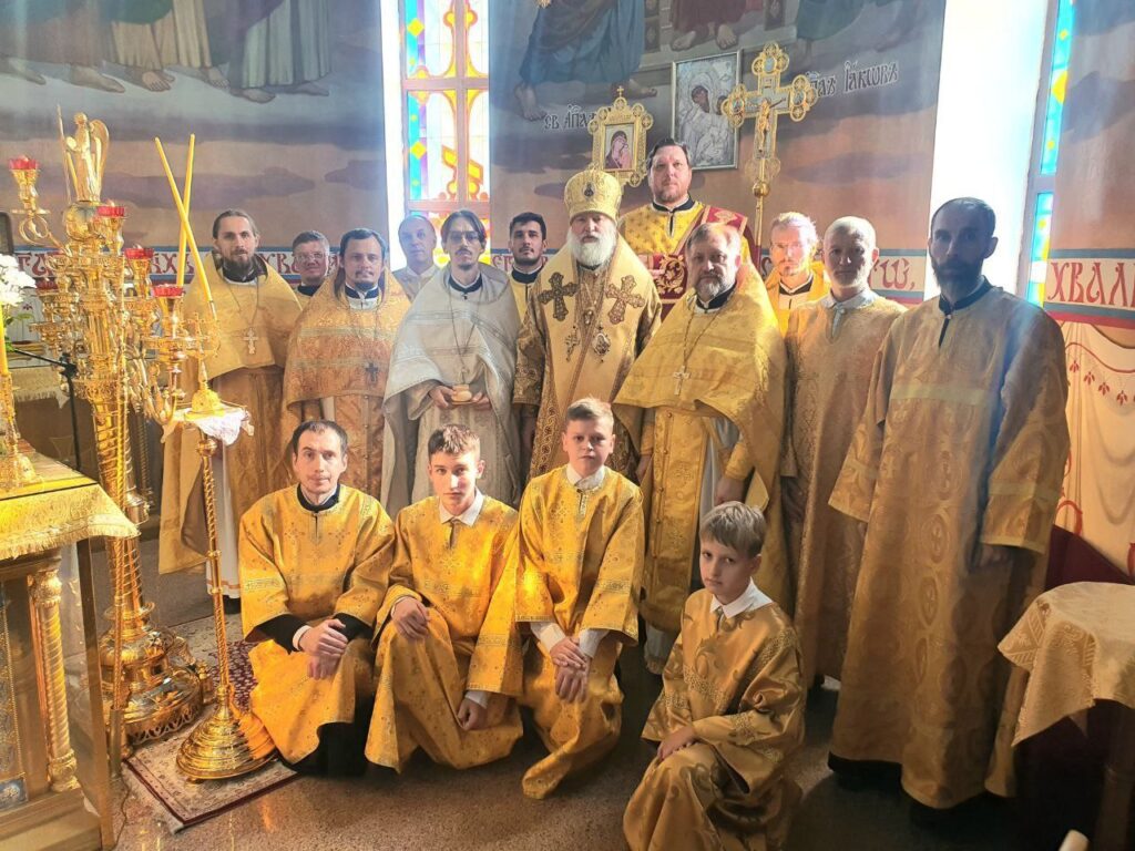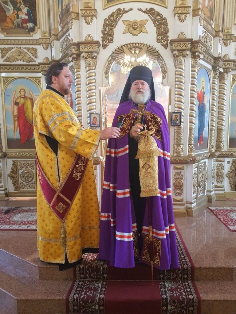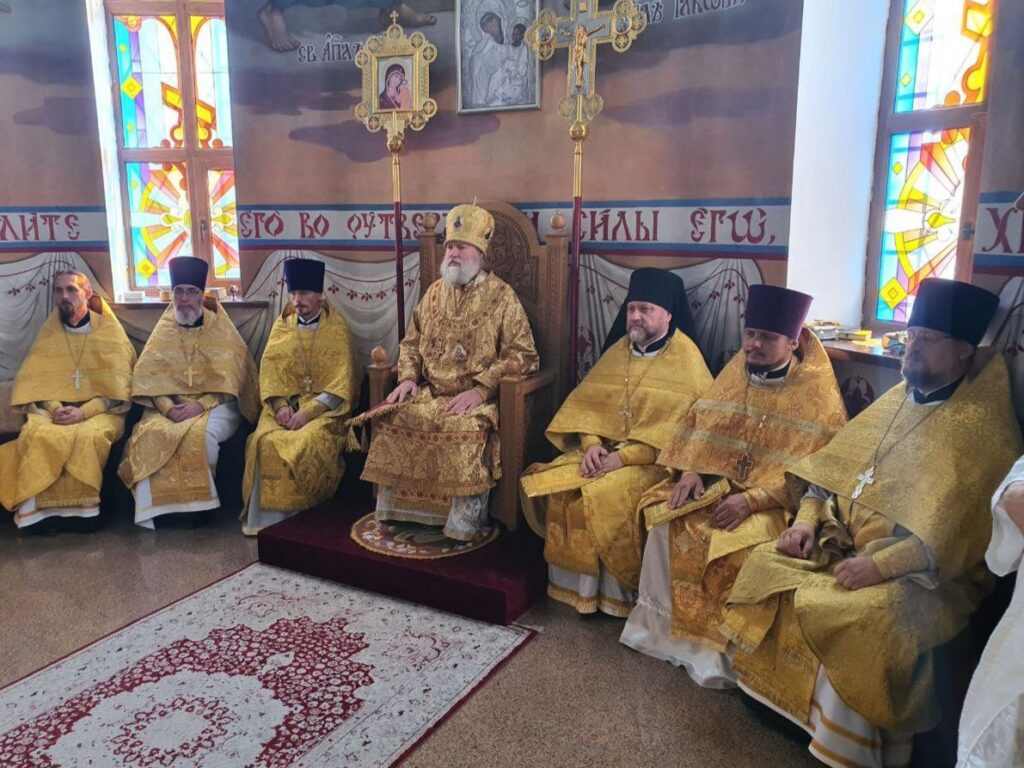 Преосвященному владыке сослужили: и.о.благочинного церквей Актюбинского церковного округа, настоятель храма во имя Архистратига Божия Михаила иеромонах Киприан (Дахно), настоятель храма в честь преподобного Серафима Саровского города Хромтау протоиерей Михаил Степанов, настоятель прихода иконы Божией Матери «Умягчение злых сердец» посёлка Мартук иерей Владимир Волощук, настоятель храма святого равноапостольного князя Владимира протоиерей Димитрий Соловьёв, ключарь собора иерей Леонид Худяков, клирики собора иерей Роман Сайтиев, секретарь епархии иерей Борис Фатеев, диакон Сергий Мешков.
