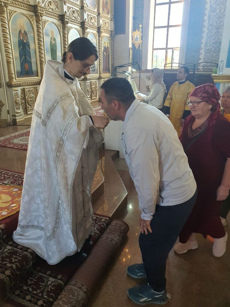 За богослужением молились сотрудники епархиального управления, сестры-монахини, прихожане собора, православные верующие города Актюбинска и паломники.