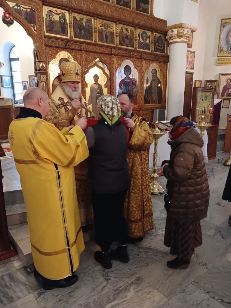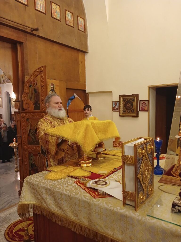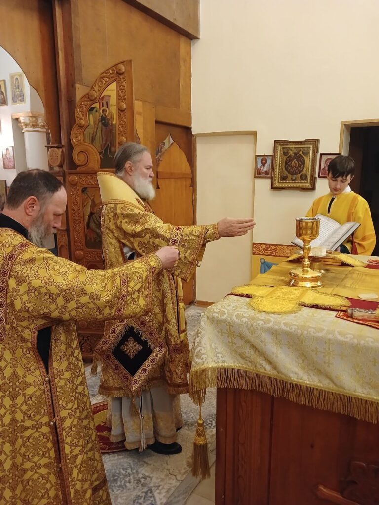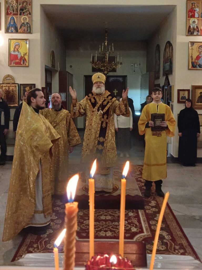Преосвященному владыке сослужили и.о. настоятеля прихода иерей Даниил Ивашинин, диакон Михаил Харченко.