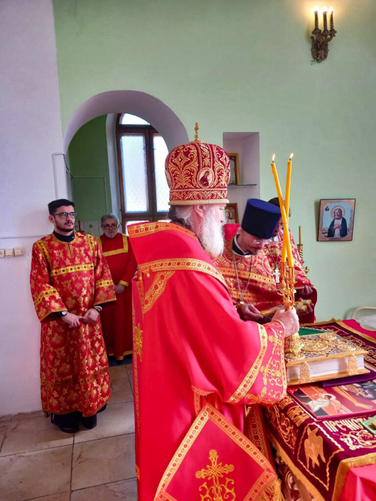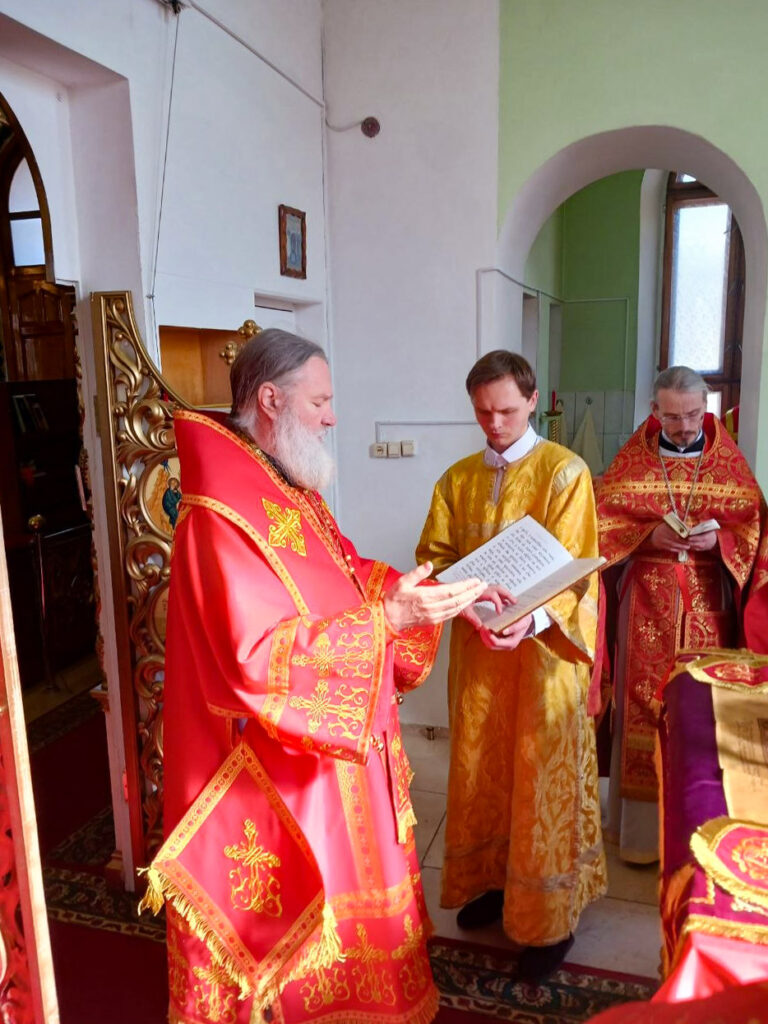 Управляющему епархии сослужили: настоятель храма Архистратига Михаила иеромонах Киприан (Дахно), настоятель Свято-Серафимовского прихода протоиерей Михаил Степанов, клирик храма святого равноапостольного князя Владимира и настоятель храма иконы Божией Матери «Умягчение злых сердец» иерей Владимир Волощук, секретарь епархии иерей Борис Фатеев.