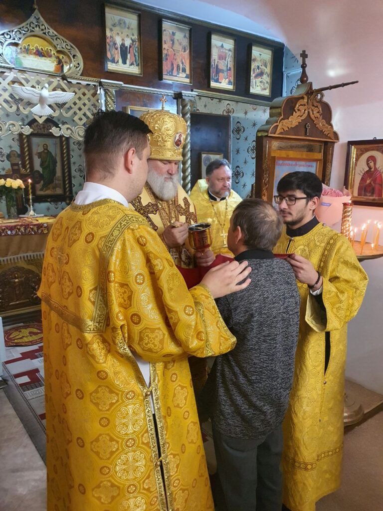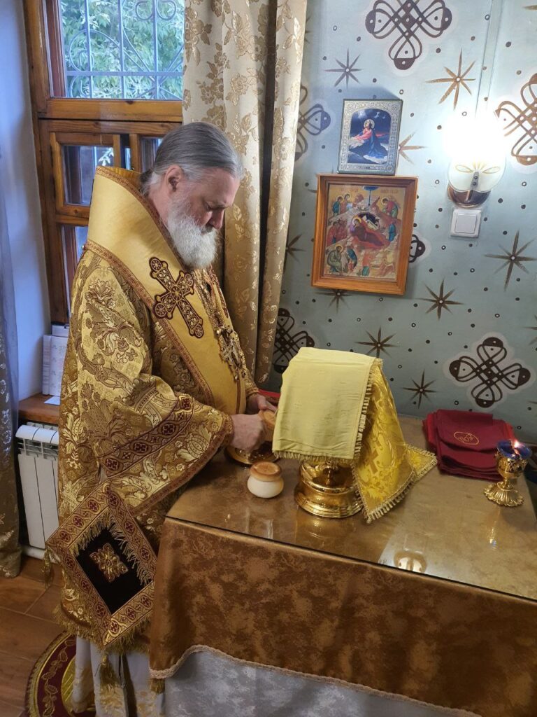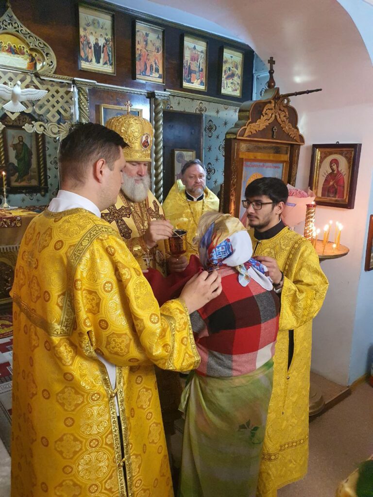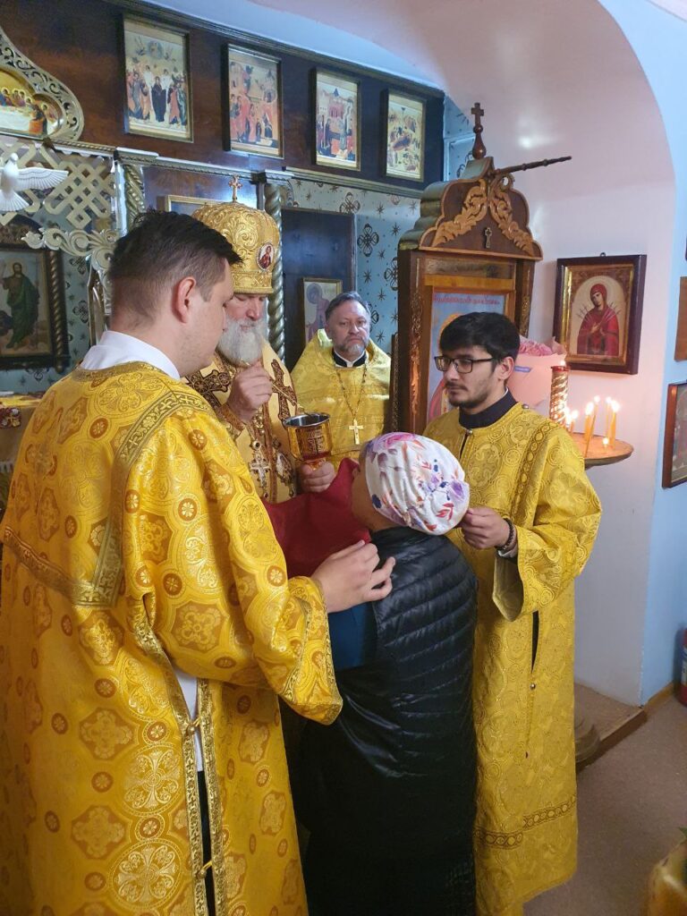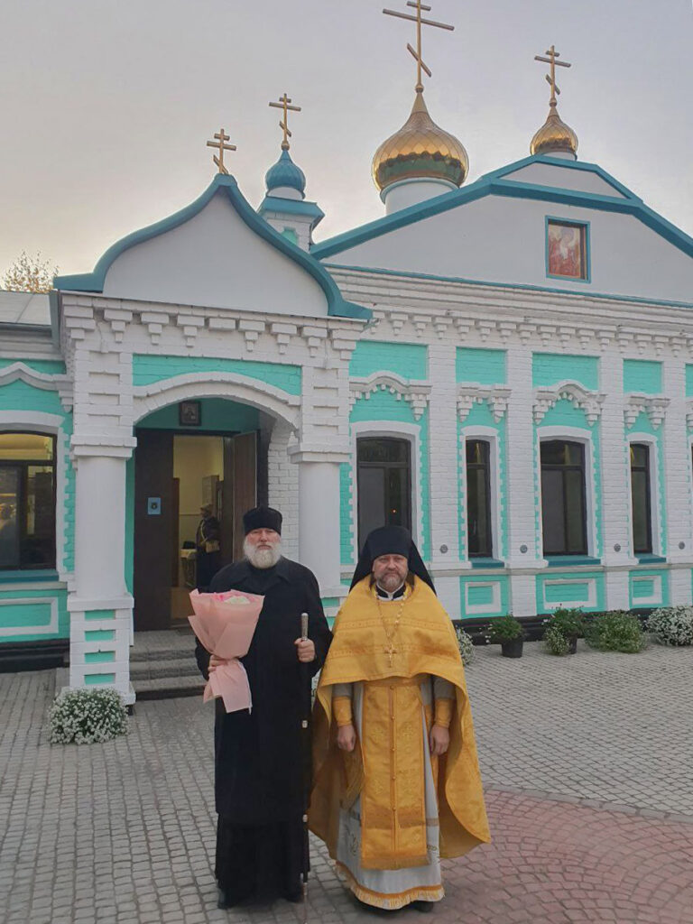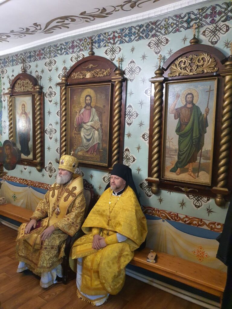 Преосвященному владыке сослужили: настоятель прихода, и.о.благочинный церквей Актюбинского церковного округа иеромонах Киприан (Дахно), секретарь епархии иерей Борис Фатеев.