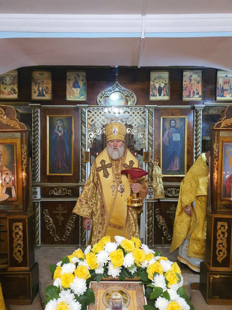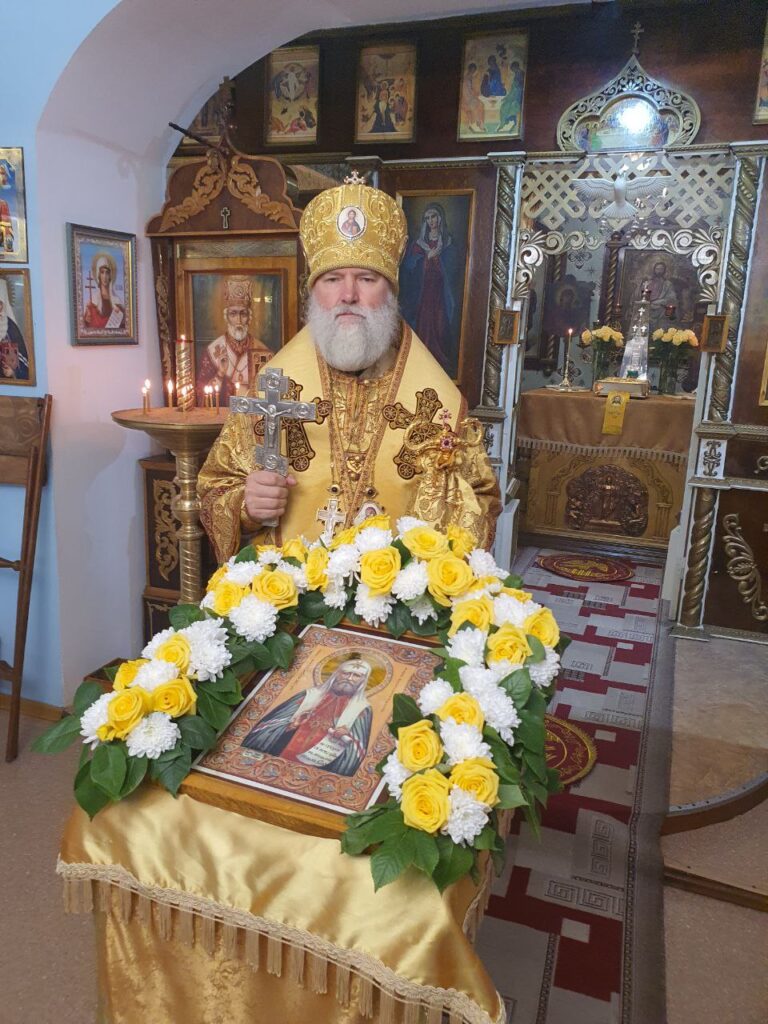 В завершение Литургии было совершено славление пред святым образом патриарха Тихона. Его Преосвященство поздравил отца-настоятеля и верующих с престольным торжеством и произнес слово поучения.