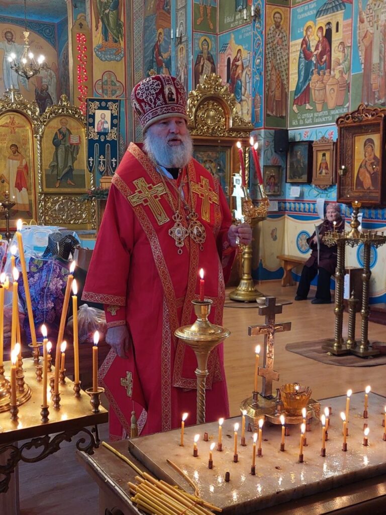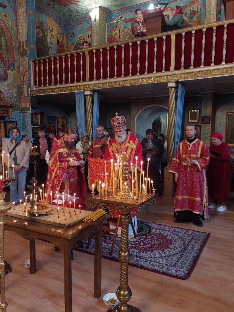 Епископ Актюбинский и Кызылординский Игнатий совершил утреню, Божественную литургию в Покровском храме города Есик, Алматинской области.