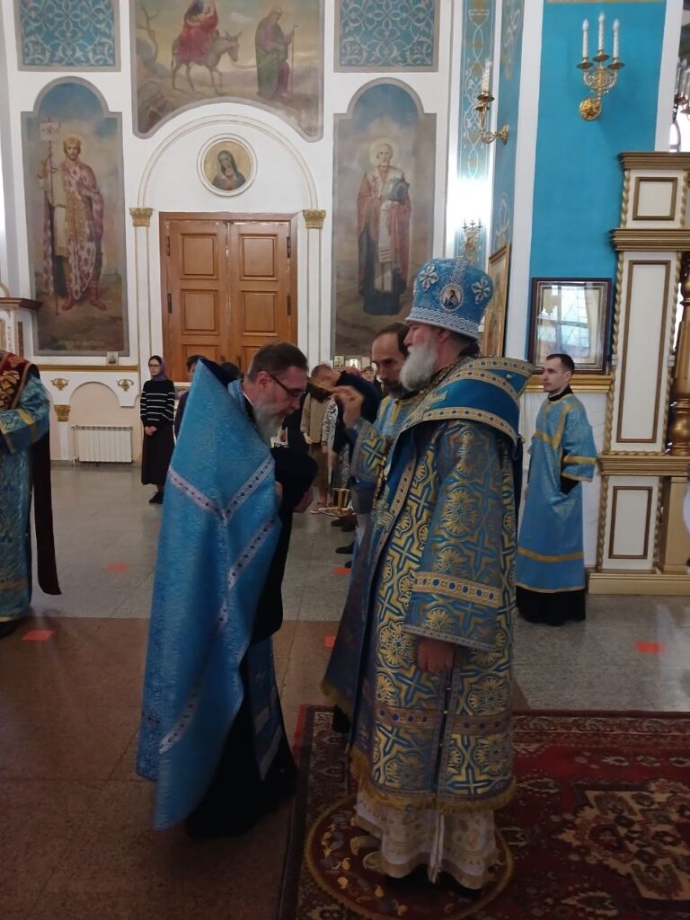 6 апреля 2026 года, в понедельник Страстной седмицы, в канун великого праздника Благовещения Пресвятой Владычицы нашей Богородицы, епископ Актюбинский и Кызылординский Игнатий совершил праздничное всенощное бдение в Никольском соборе города Актобе в сослужении соборного духовенства.
