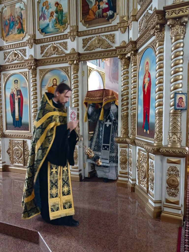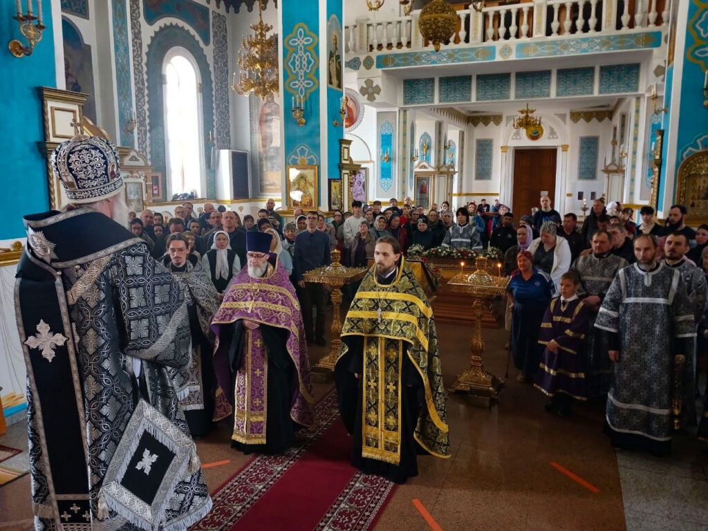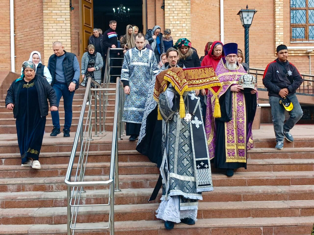 Епископ Актюбинский и Кызылординский Игнатий совершил великую вечерню с выносом святой Плащаницы и утреню с чином погребения Господа Иисуса Христа в Никольском кафедральном соборе города Актобе.