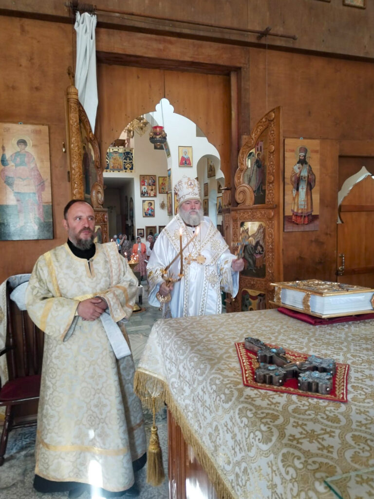 Управляющему епархии сослужили и.о. настоятеля прихода иерей Даниил Ивашинин, диакон Михаил Харченко.