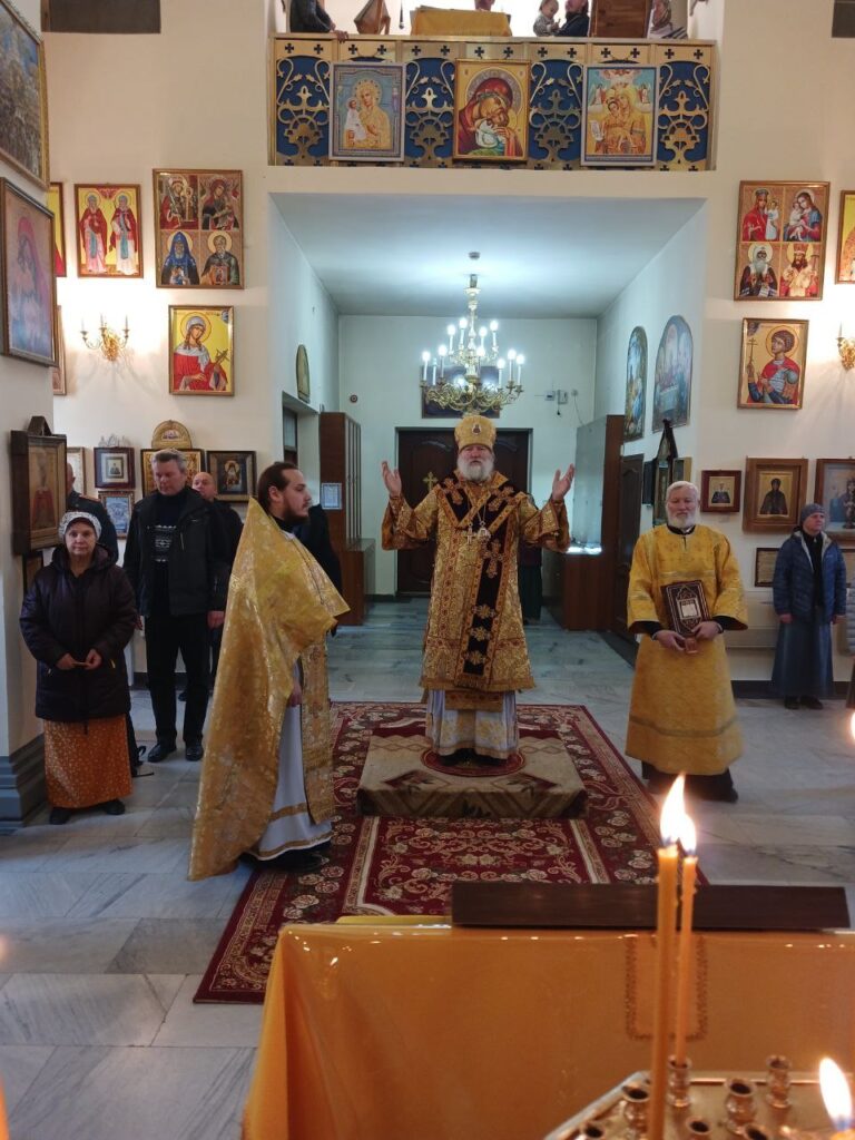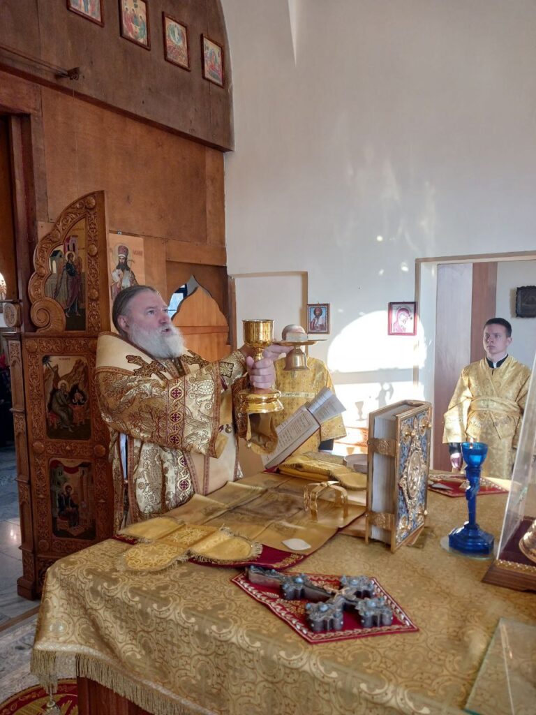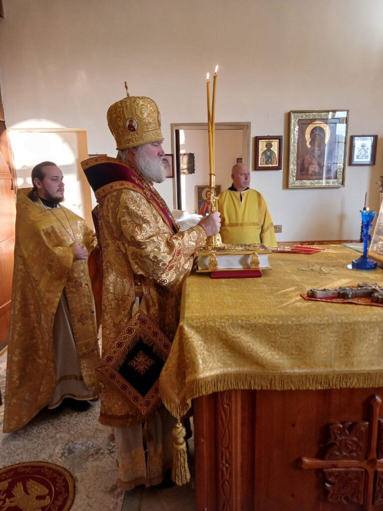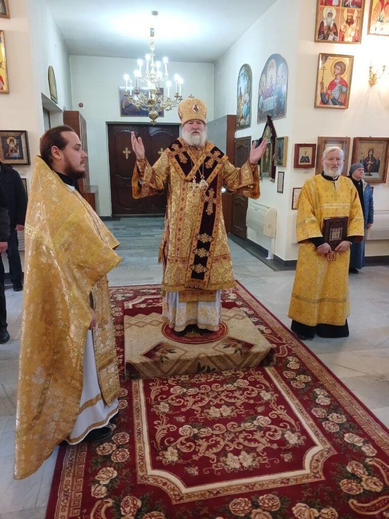 Управляющему епархии сослужил и.о. настоятеля прихода иерей Даниил Ивашинин.