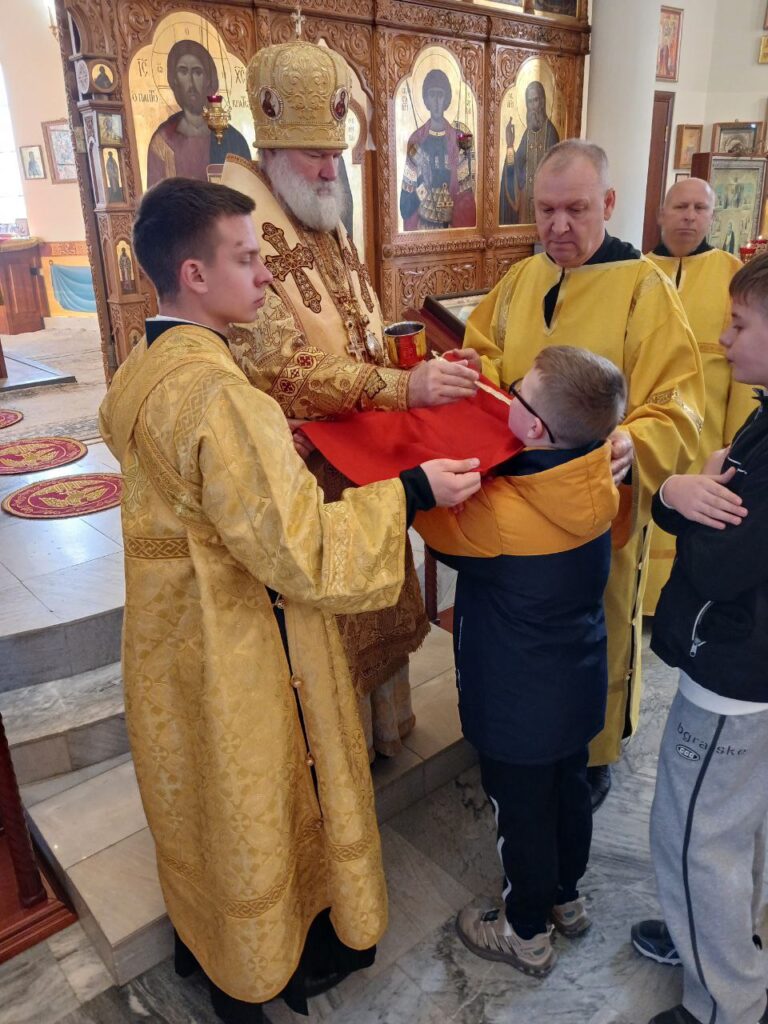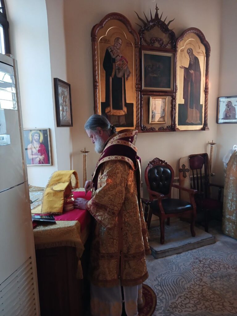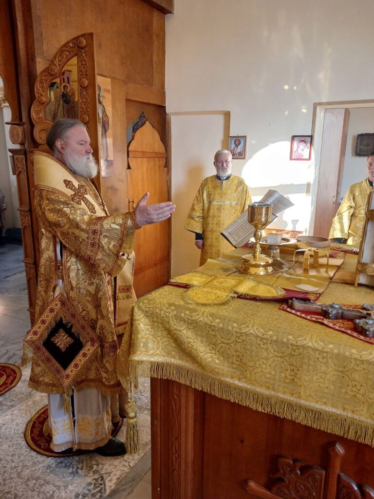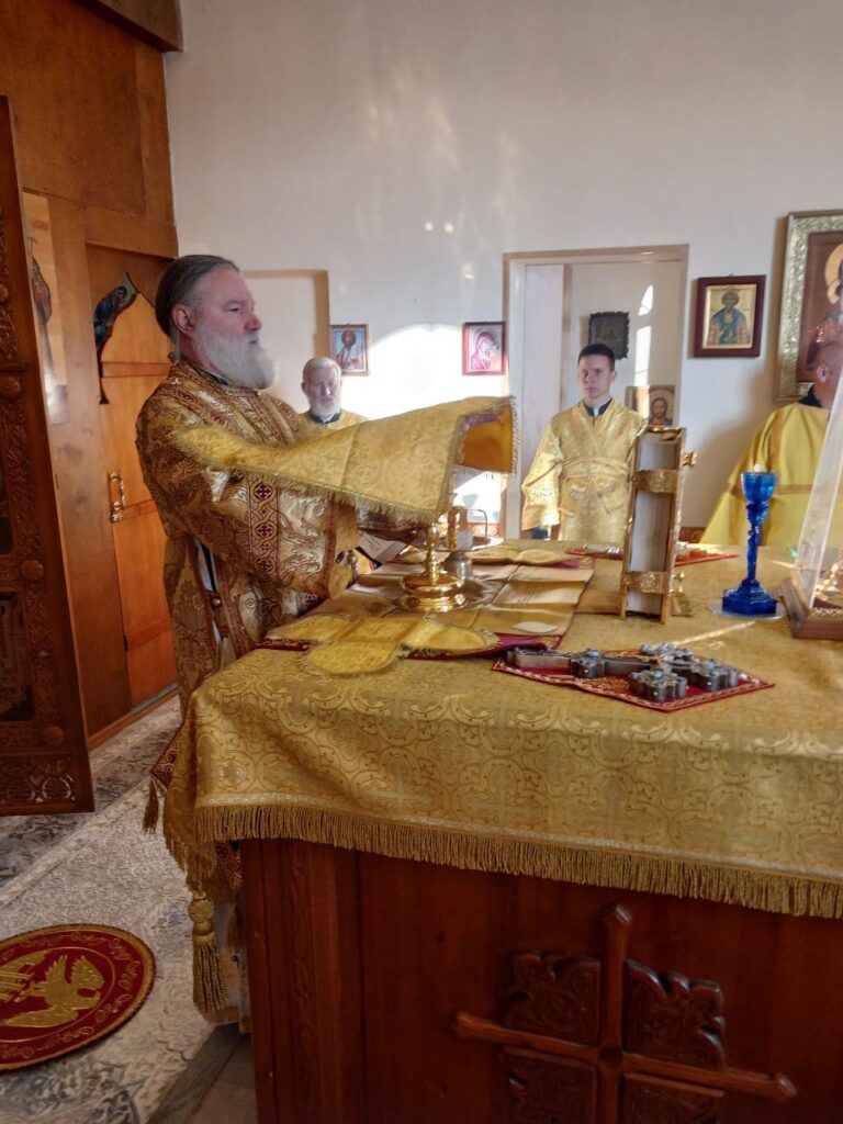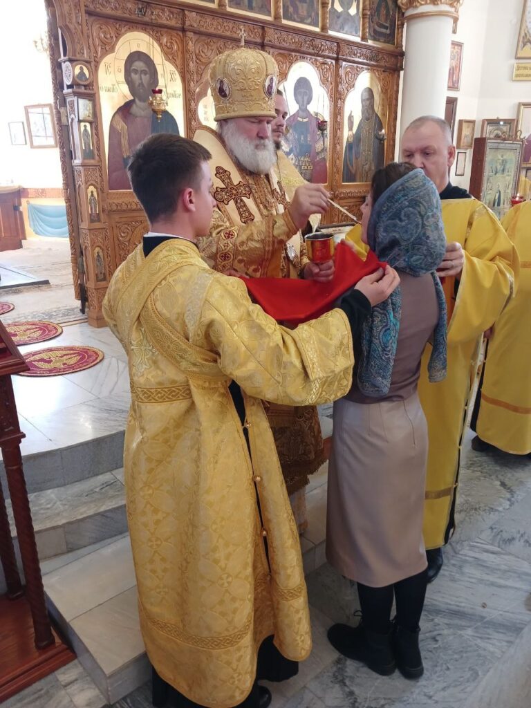 Управляющему епархии сослужил и.о. настоятеля прихода иерей Даниил Ивашинин.